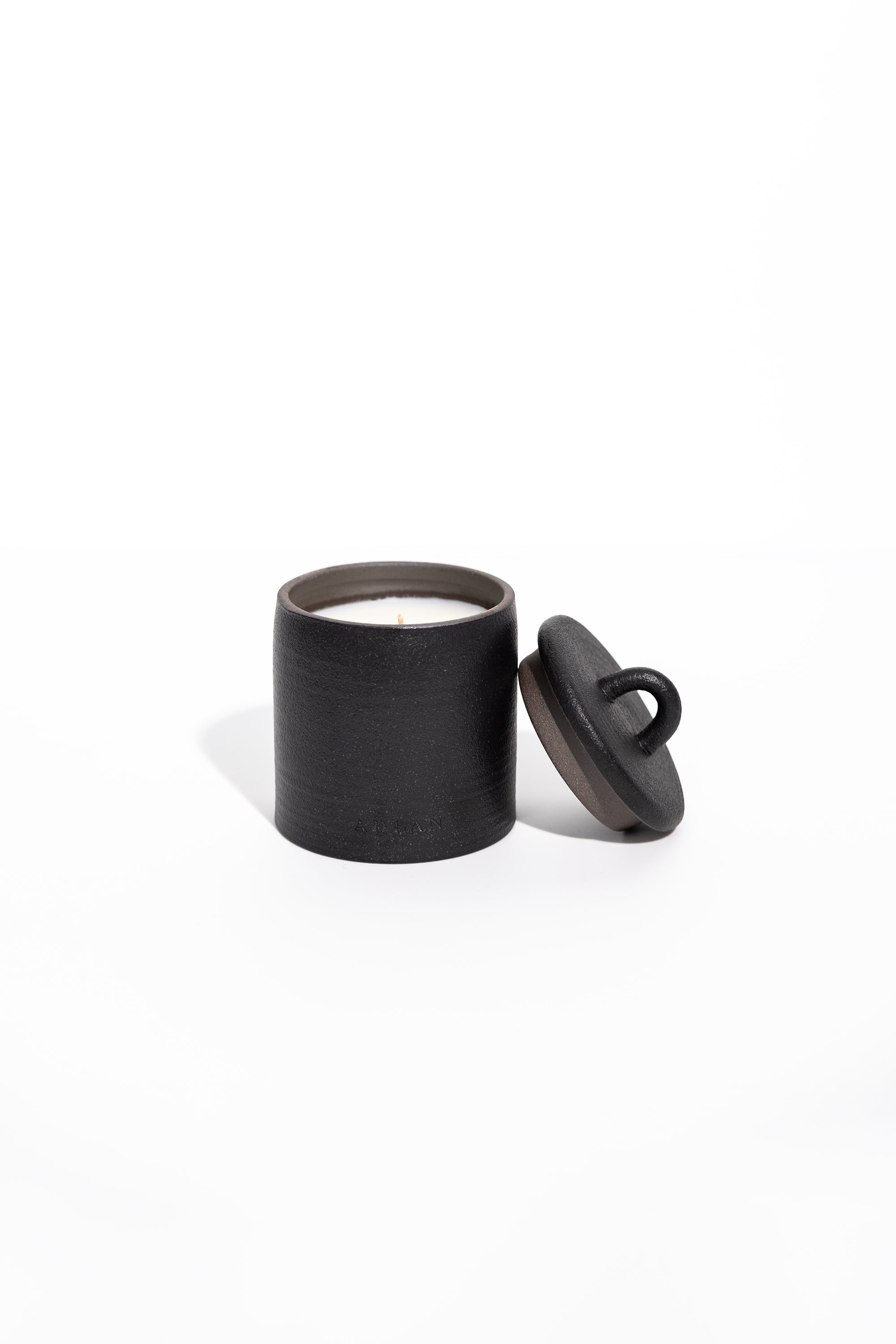 Hand-poured in the signature graphite stoneware vessel. Rinse and reuse as a spice jar, catchall, or decoration.