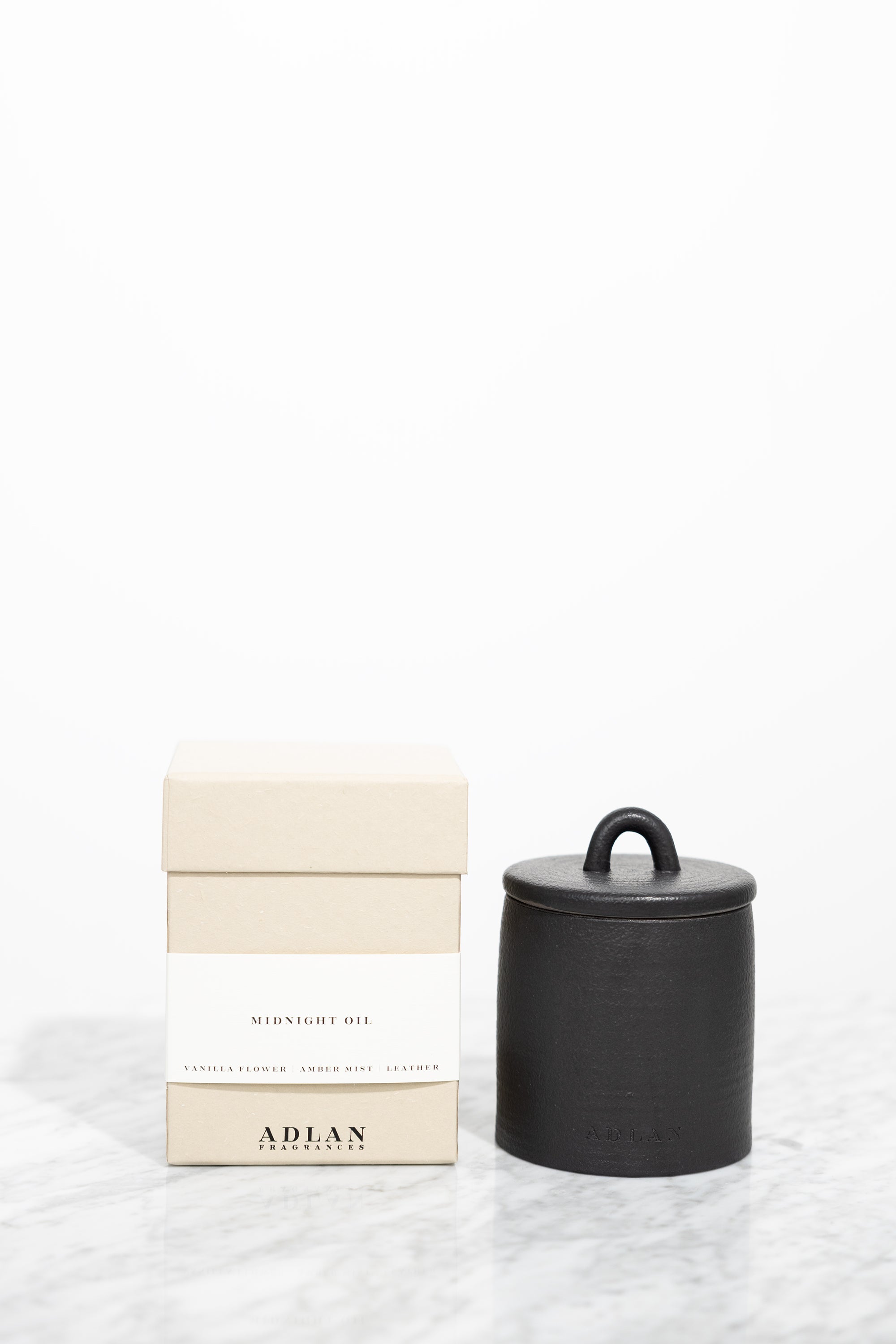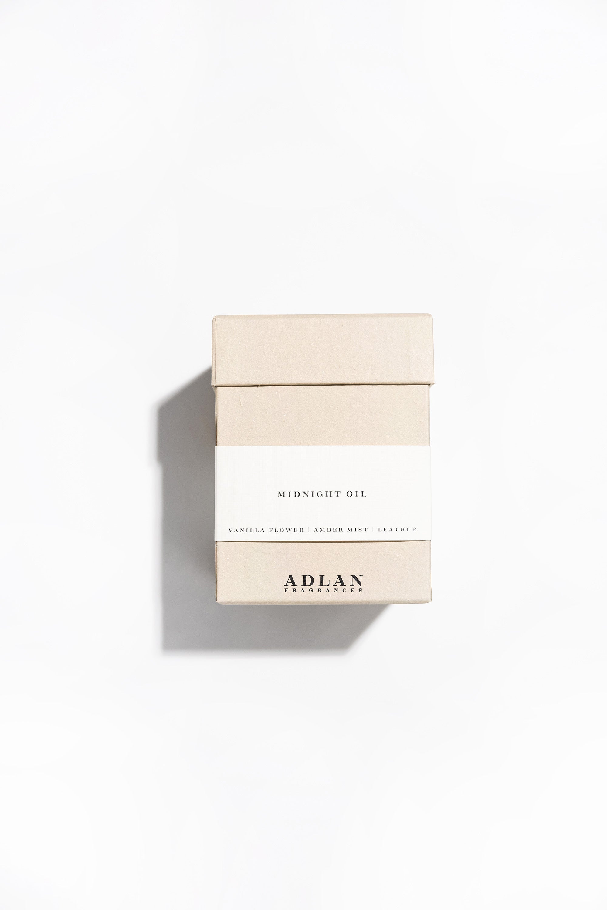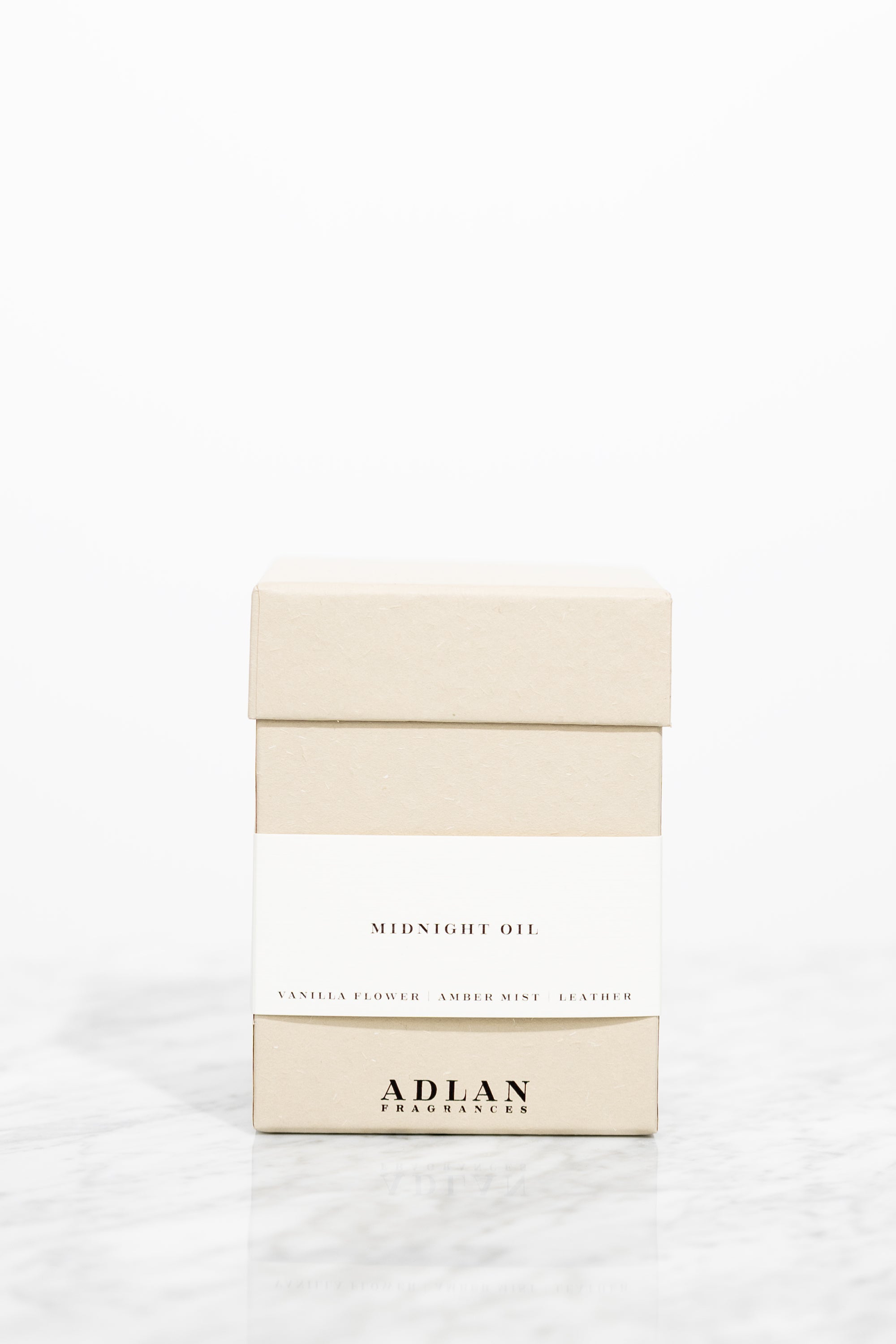Midnight Oil is a tribute to the after-hours, opening with the glow of vanilla flower and amber mist. It deepens with leather, patchouli, and finishes with sandalwood, for a serene yet intoxicating effect.