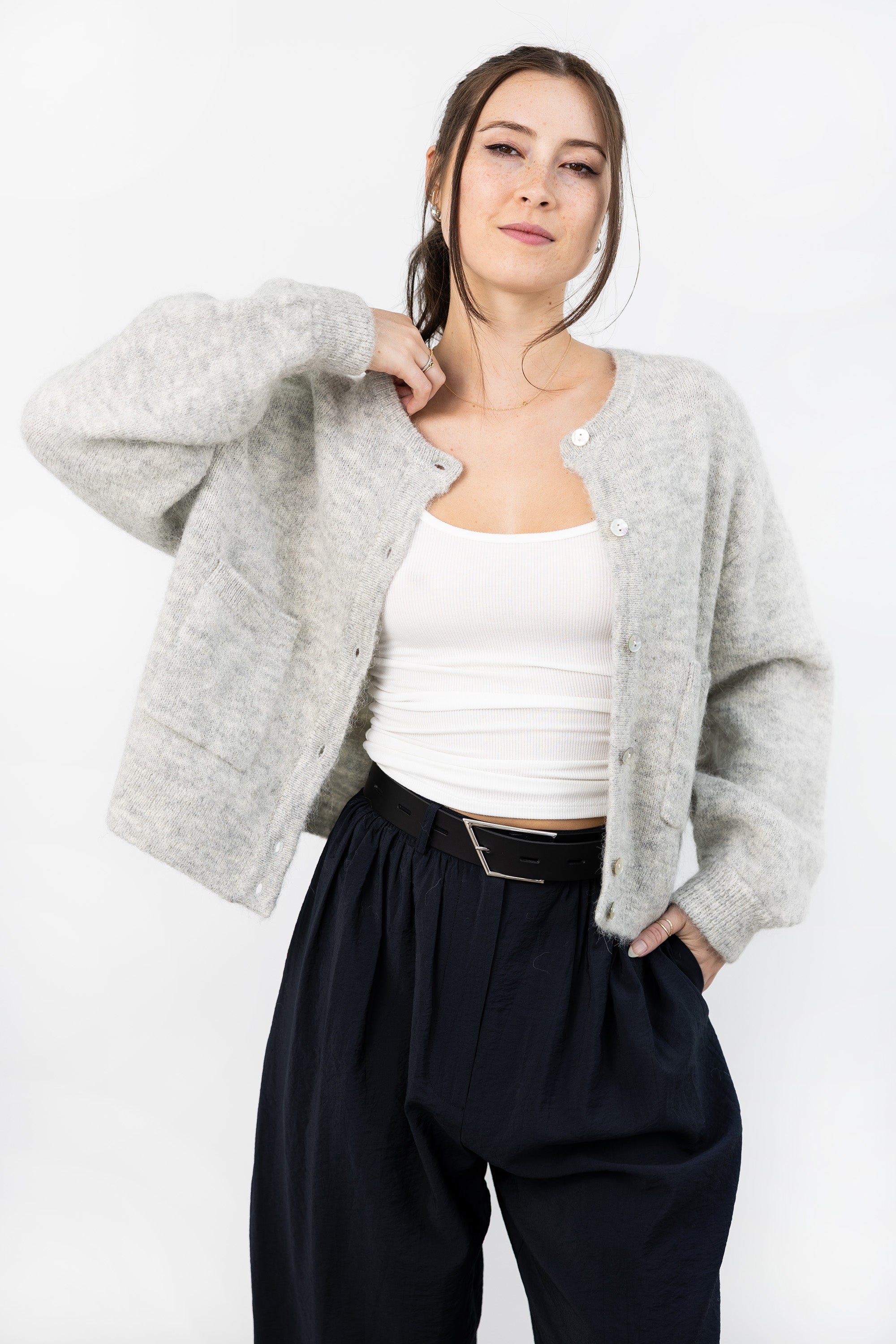 Amélie Alpaca Cardigan - Light Grey