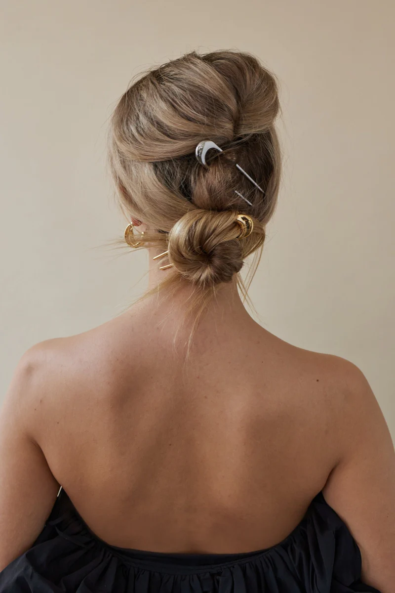 The Selene Glossy French Pin is sleek and modern, curved with rounded edges that will upgrade every top knot and chignon. Simply twist your hair and slip in your pin.