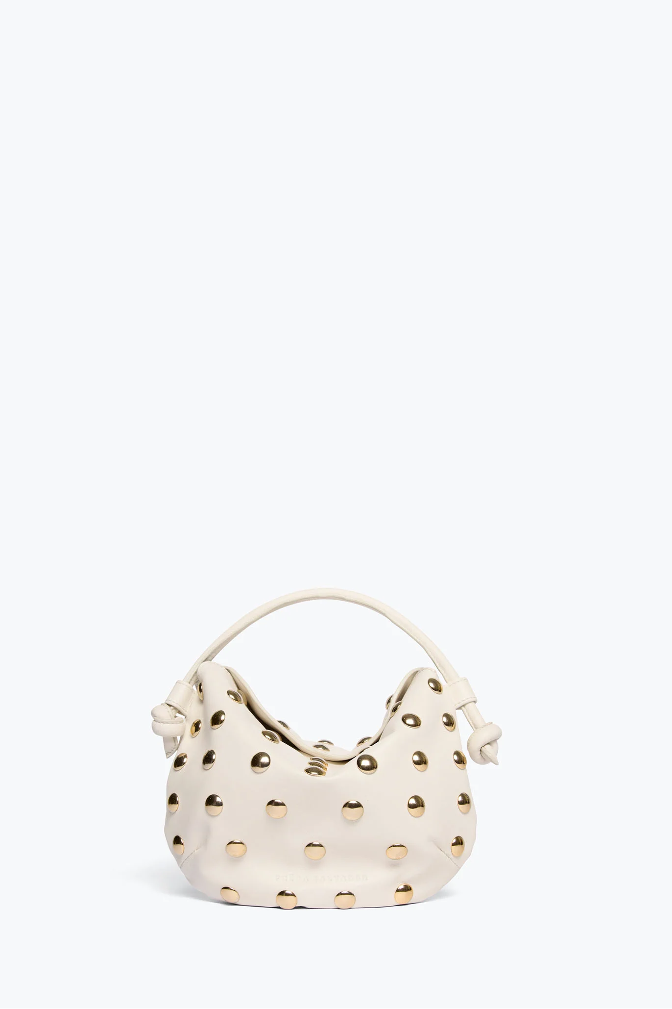 Elis Mini Crescent Bag - Bone Nappa With Gold Studs