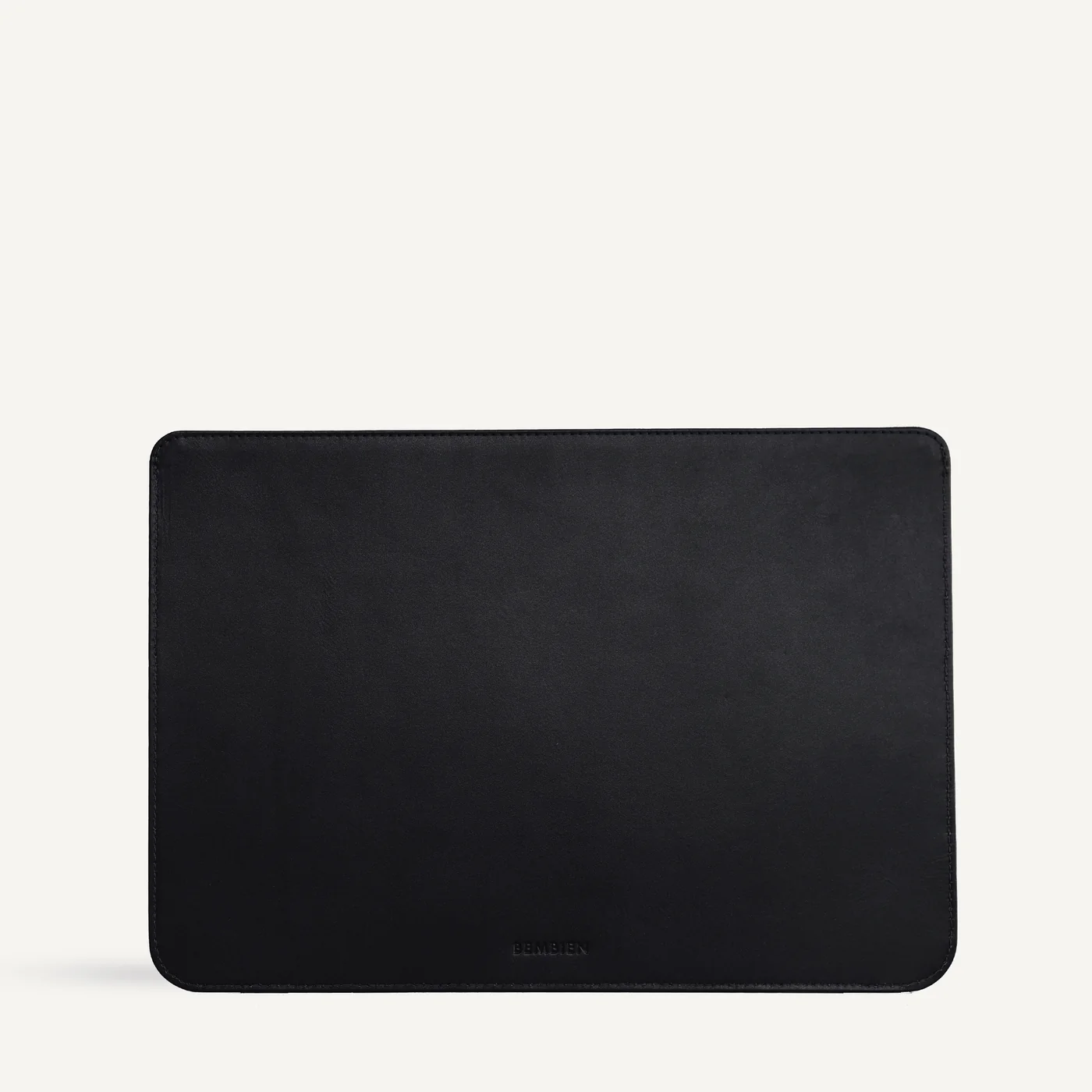 An elegant leather laptop sleeve. Features the signature handwoven carré leather on one side and smooth leather on the other side.