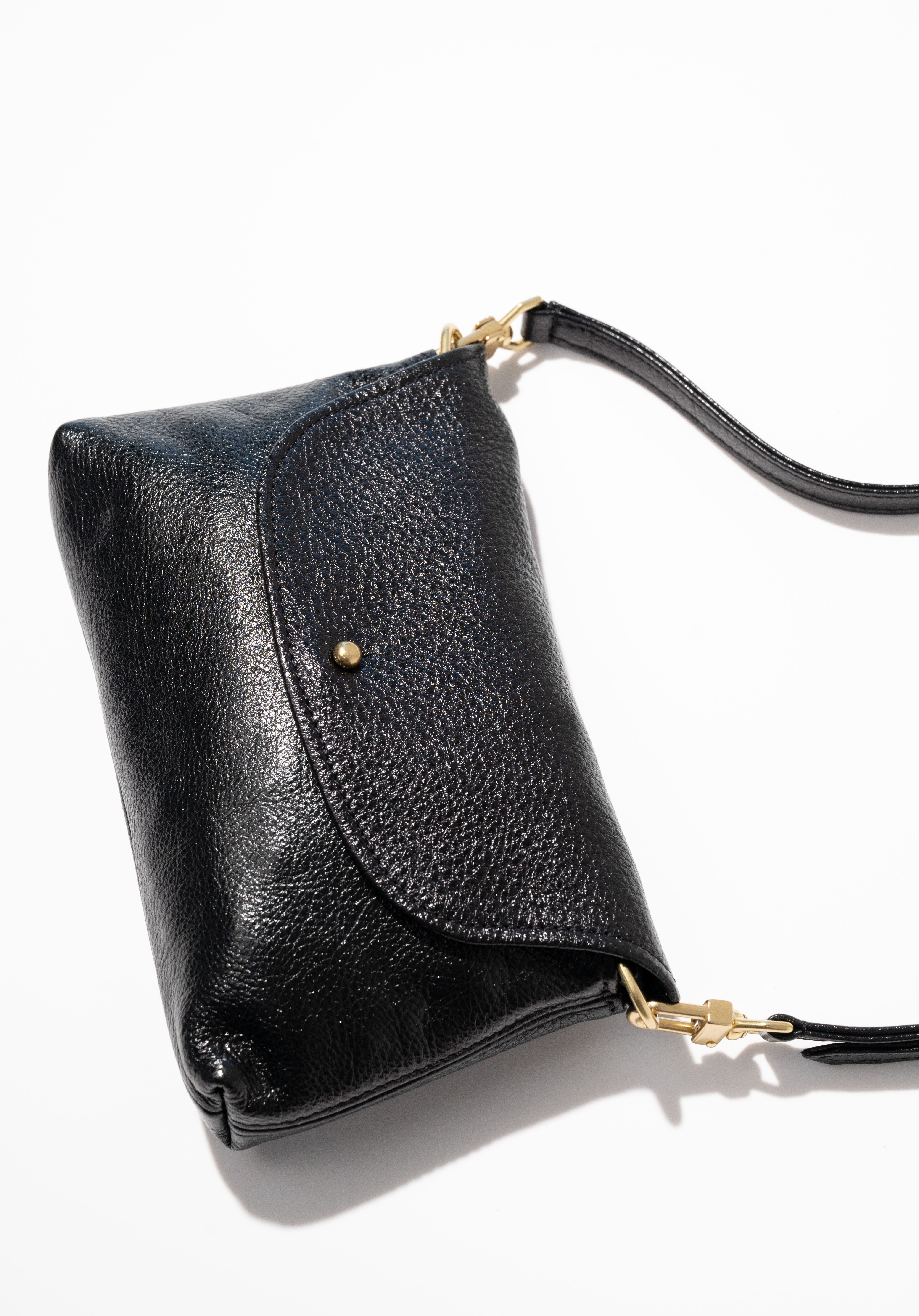 Kaanapali Crossbody - Black Metallic Aniline Leather