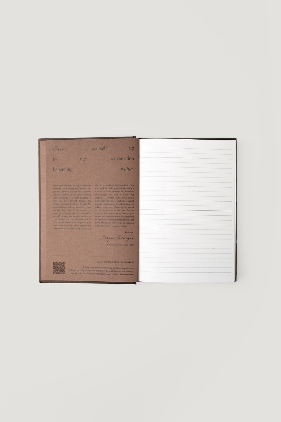 A lined journal designed to inspire you to actually journal by supporting you with a free library of digital journaling courses.