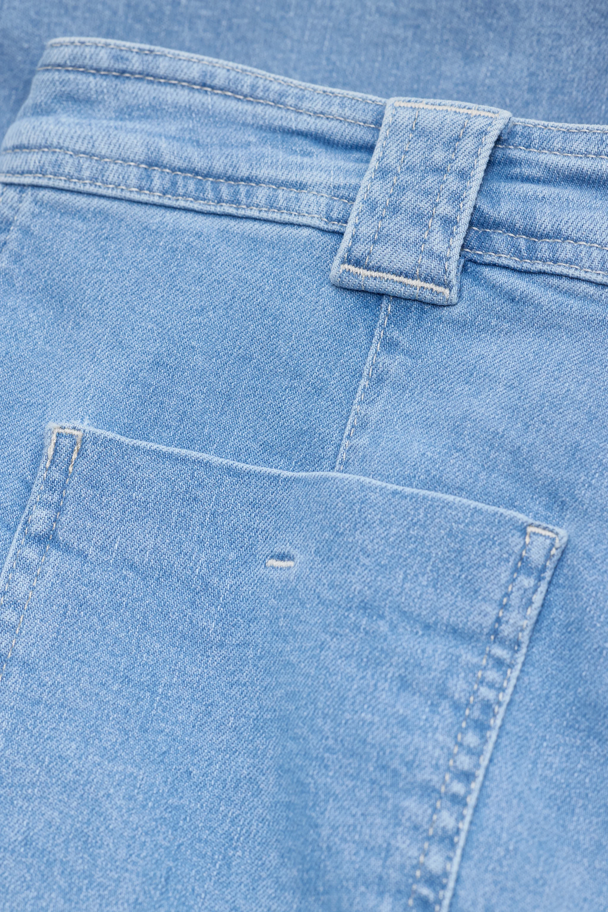 • Looks like: mid-blue denim in a classic wash, light-coloured seams and copper-coloured details