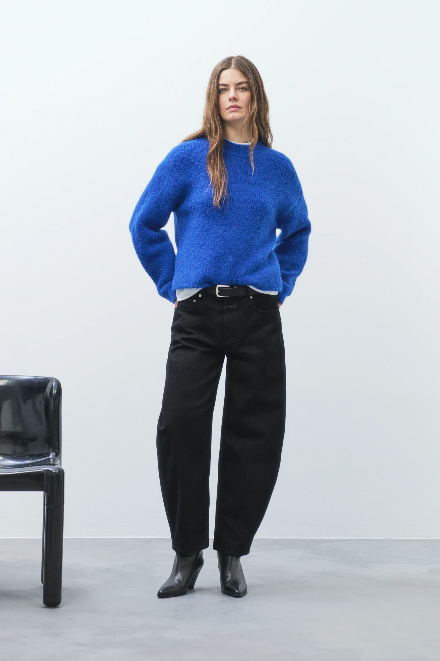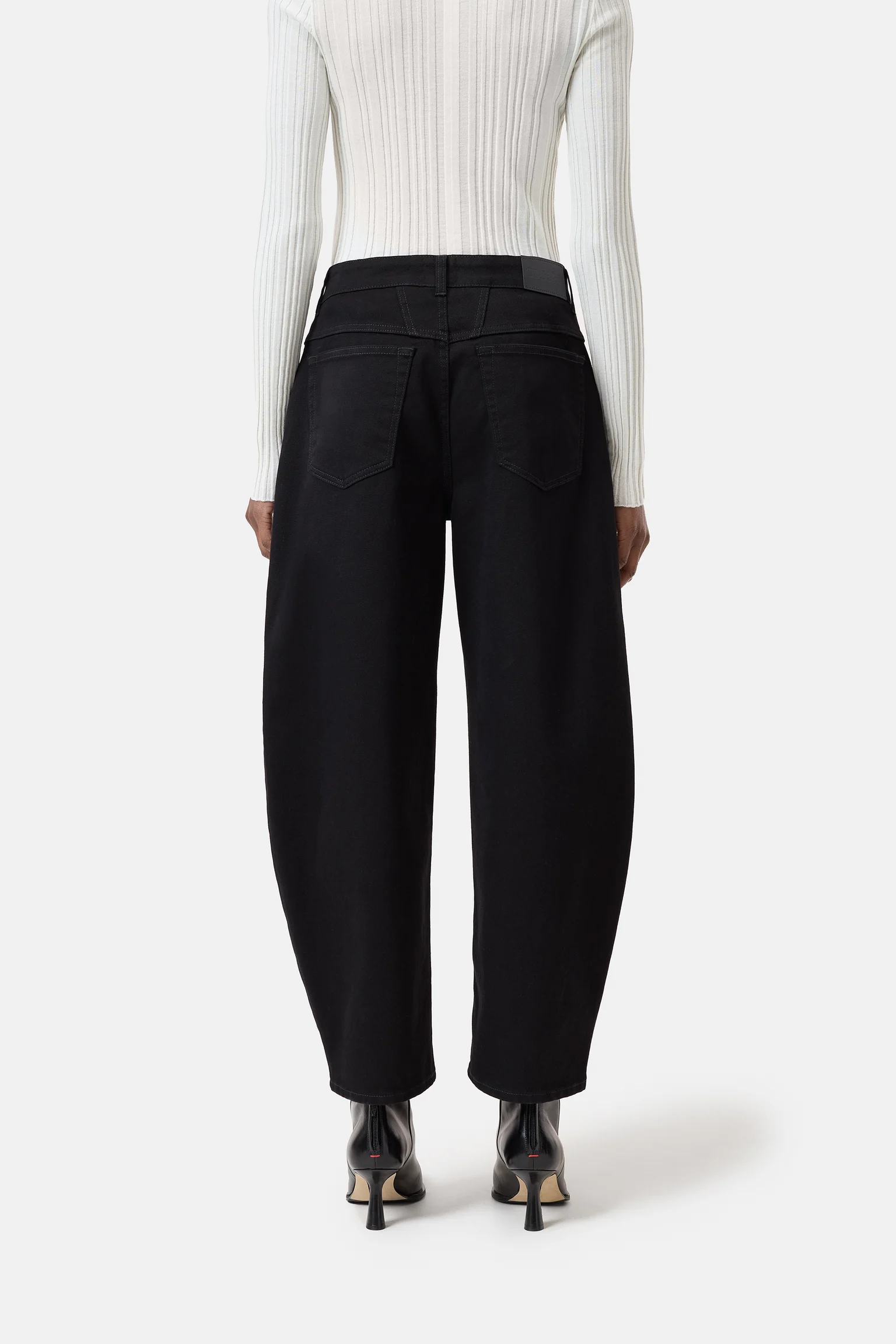 The Jazzie denim has a relaxed barrel fit with mid waist and cropped legs. The jeans are made in Italy from soft Candiani denim. The reactive black technology ensures for lasting color, while elastane is added for extra comfort.