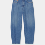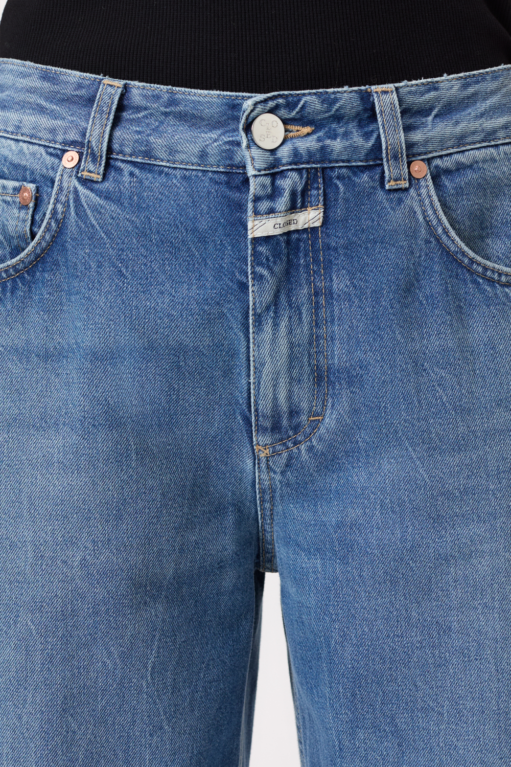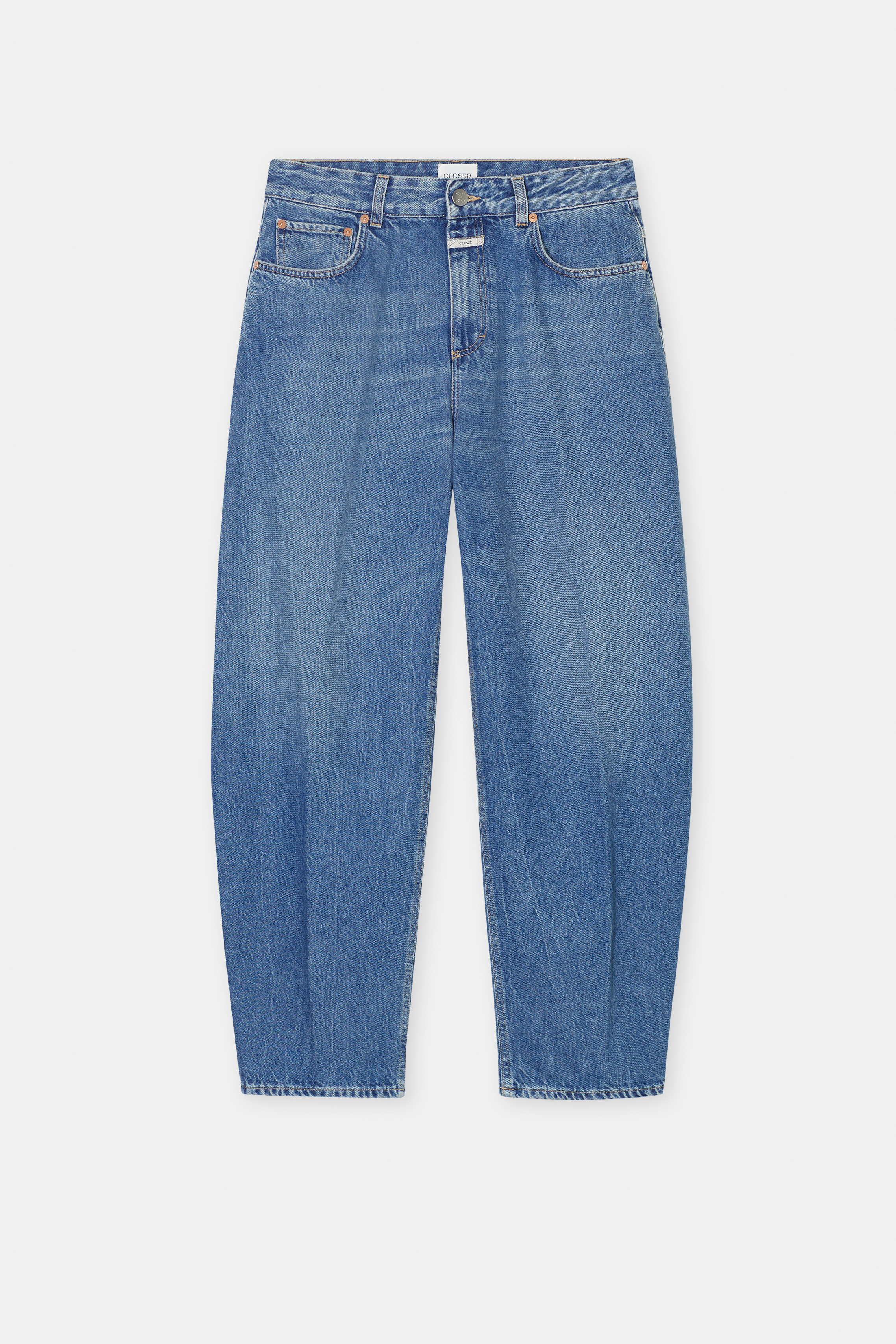 Our new 5-pocket denim style in a relaxed, modern barrel fit with a mid-rise and cropped length. Crafted in Italy from robust blue denim (12 oz.) with salt 'n pepper effects and a worn wash. Part of the A BETTER BLUE eco-denim line, which reduces the use of chemicals, water, and energy in denim production.