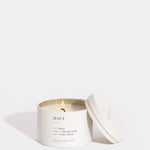 These luxe matte off-white travel-friendly tins are perfect for the office or jetsetting around the globe. Instantly cozify any hotel room with your favorite scent and the warm glow of candlelight. Or scatter them throughout your home give each room a different scent personality.