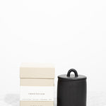 Hand-poured in the signature graphite stoneware vessel. Rinse and reuse as a spice jar, catchall, or decoration.