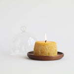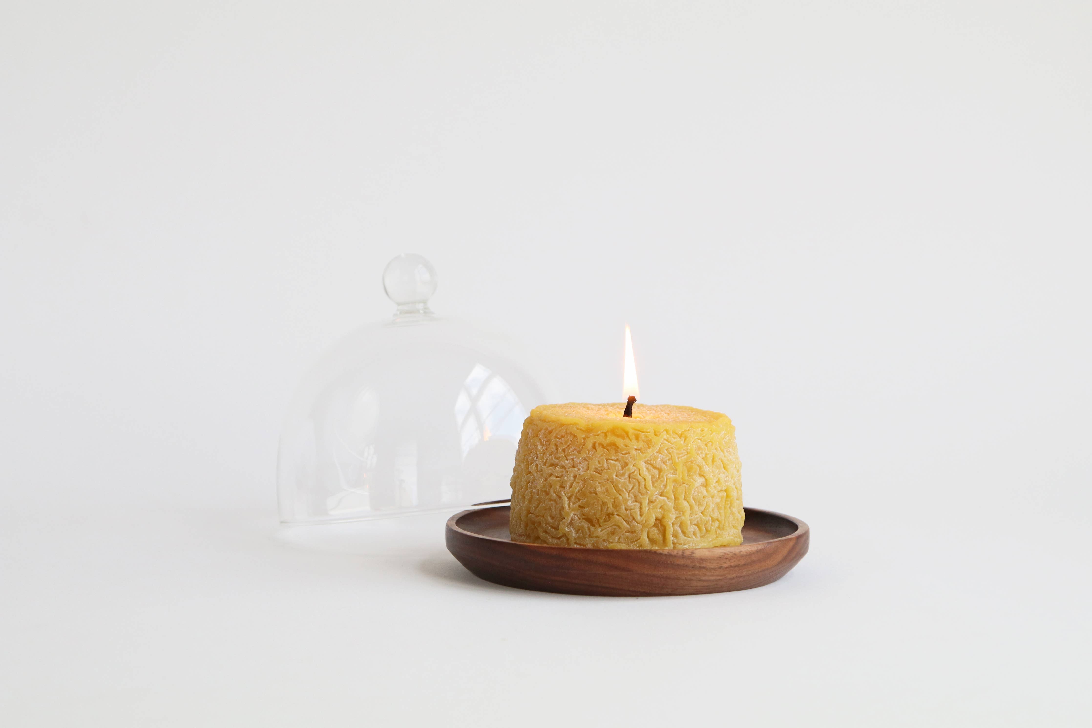 The intricate texture of this bloomy aged latic is captured in the golden glow of pure beeswax. This candle burns clean and beautifully, adding a touch of natural elegance to your cheeseboard display. Its gentle honey aroma complements your tablescape feast without overpowering it.