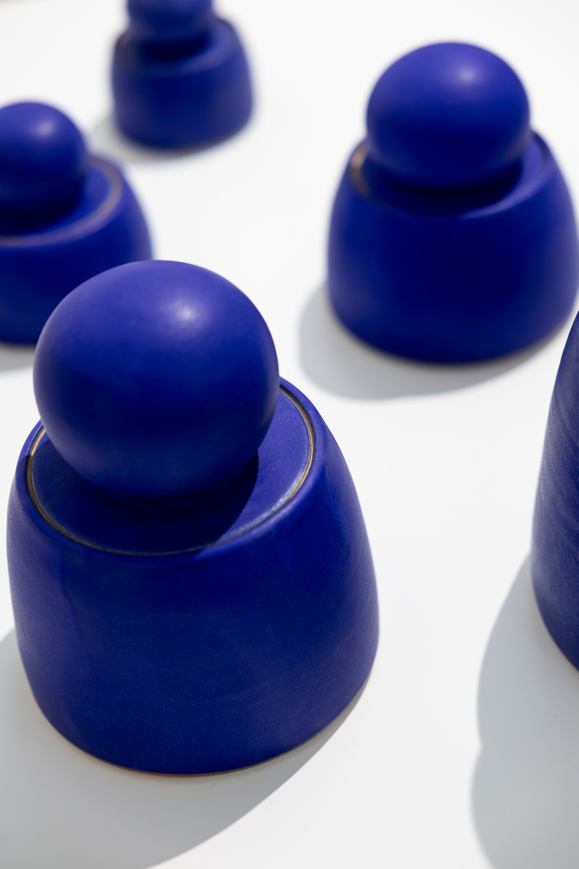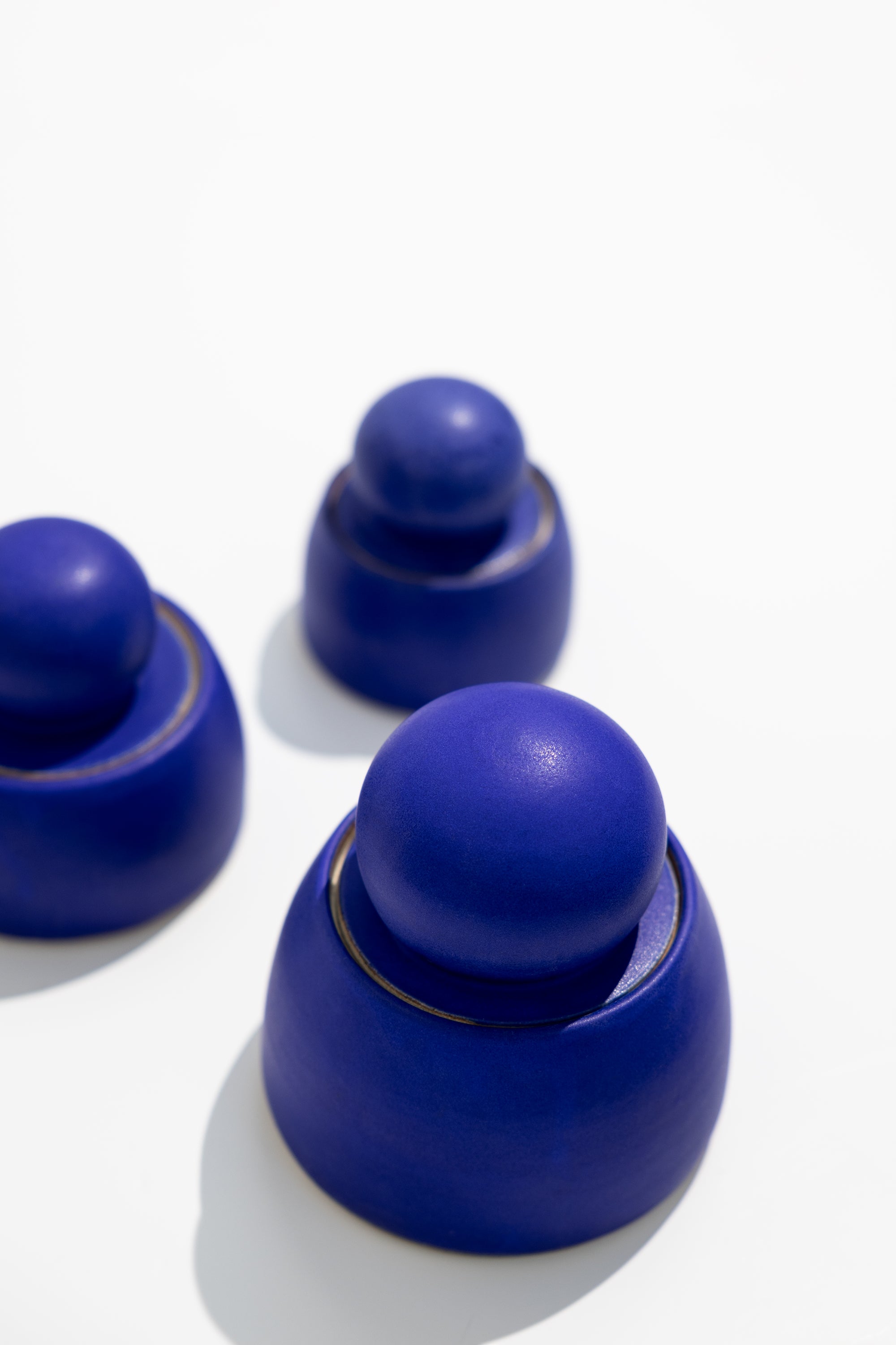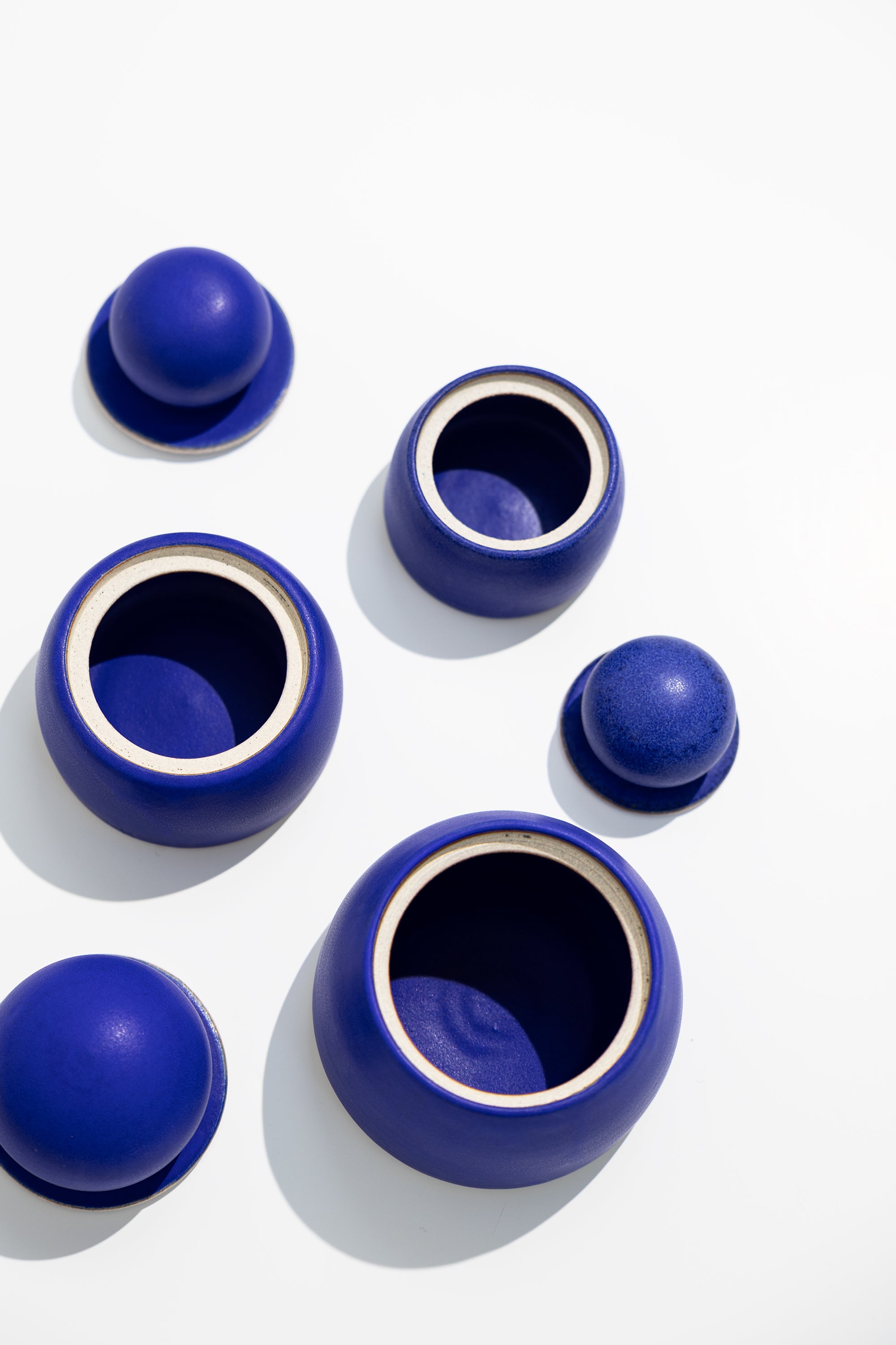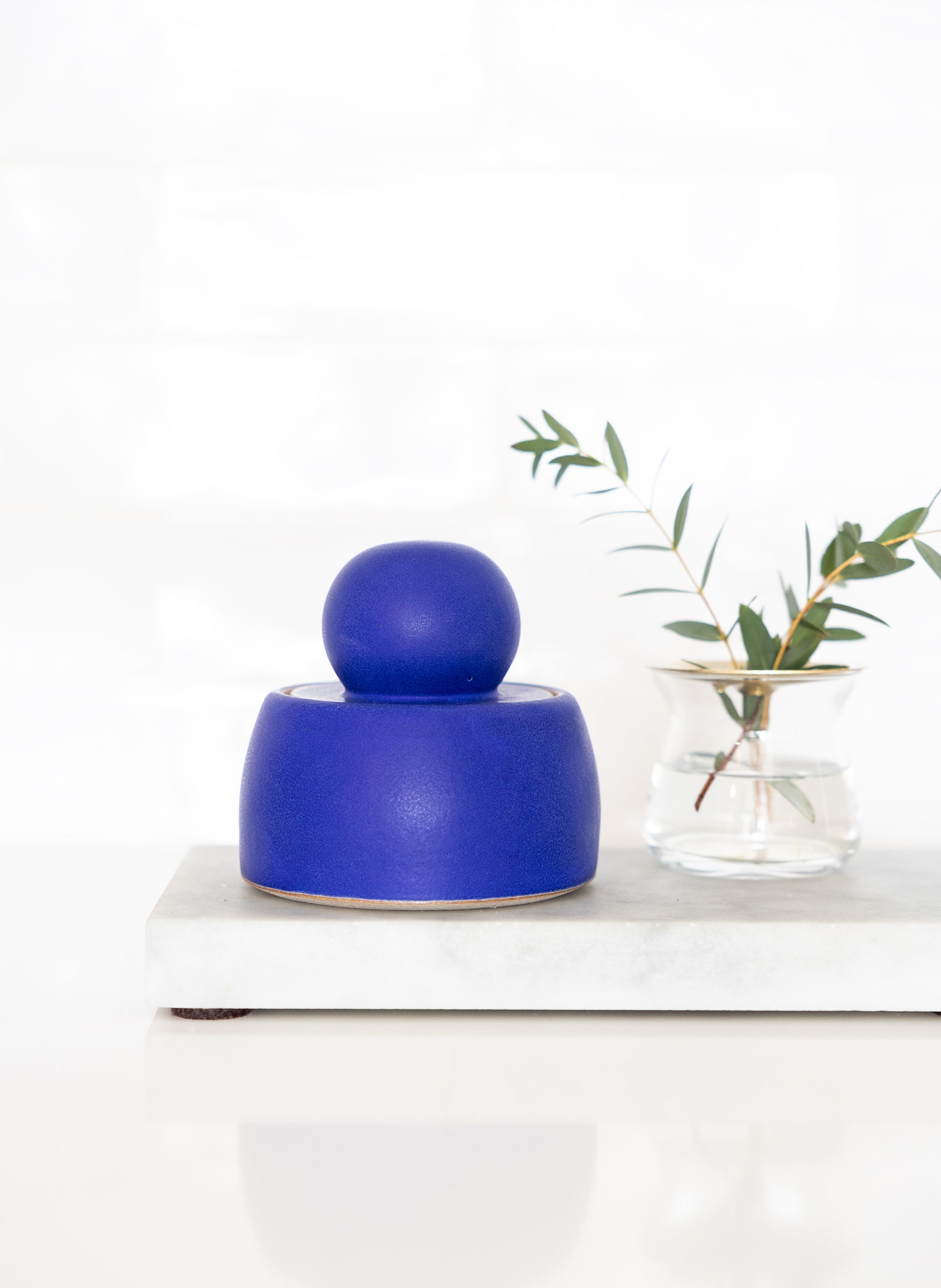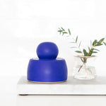 Add a bold pop of color to your space with these stunning hand-thrown stash jars from MH STUDIO. Crafted from white stoneware, their vibrant electric blue glaze is beautifully accented by chunky, sculptural knobs for a striking, modern look.