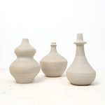 This SOMBRA vase is handcrafted from wheel-thrown stoneware with a glazed interior and a raw ceramic exterior. Its quartzite clay body gives it a unique and mottled appearance, ranging from off-white to light gray. Each piece is hand-stamped with the maker's mark.