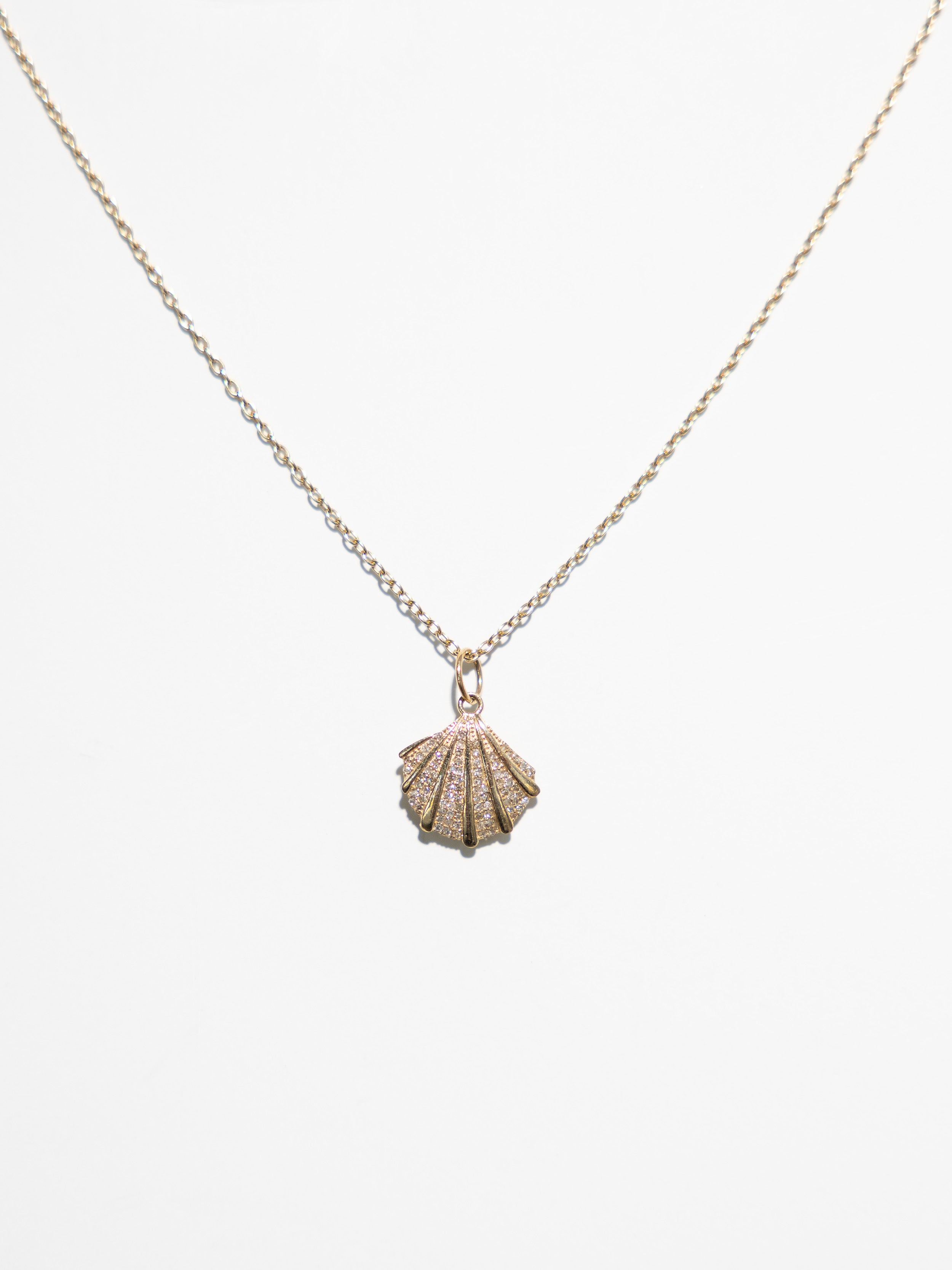 Sparkle up your beachy style with our 14K Diamond Encrusted Seashell Charm! This little gem will add a touch of luxury to your seaside look, making you feel like a true mermaid (minus the tail, of course).