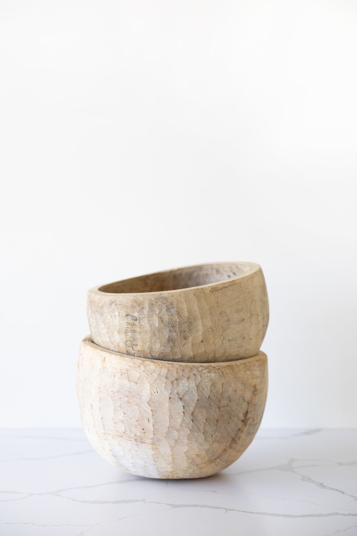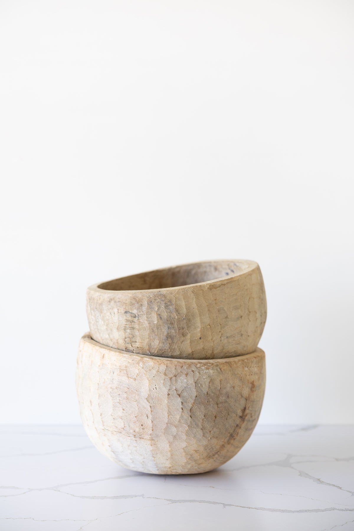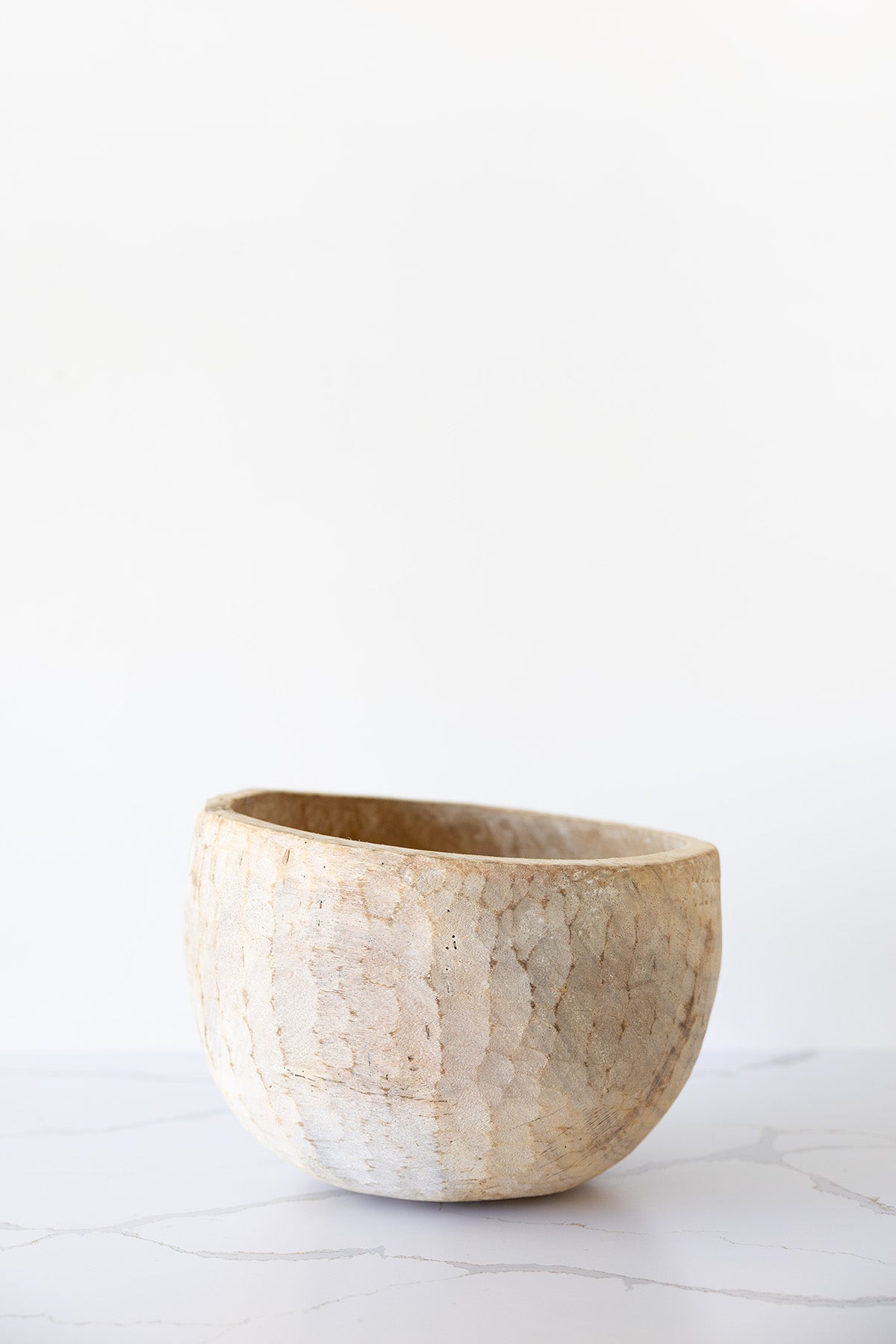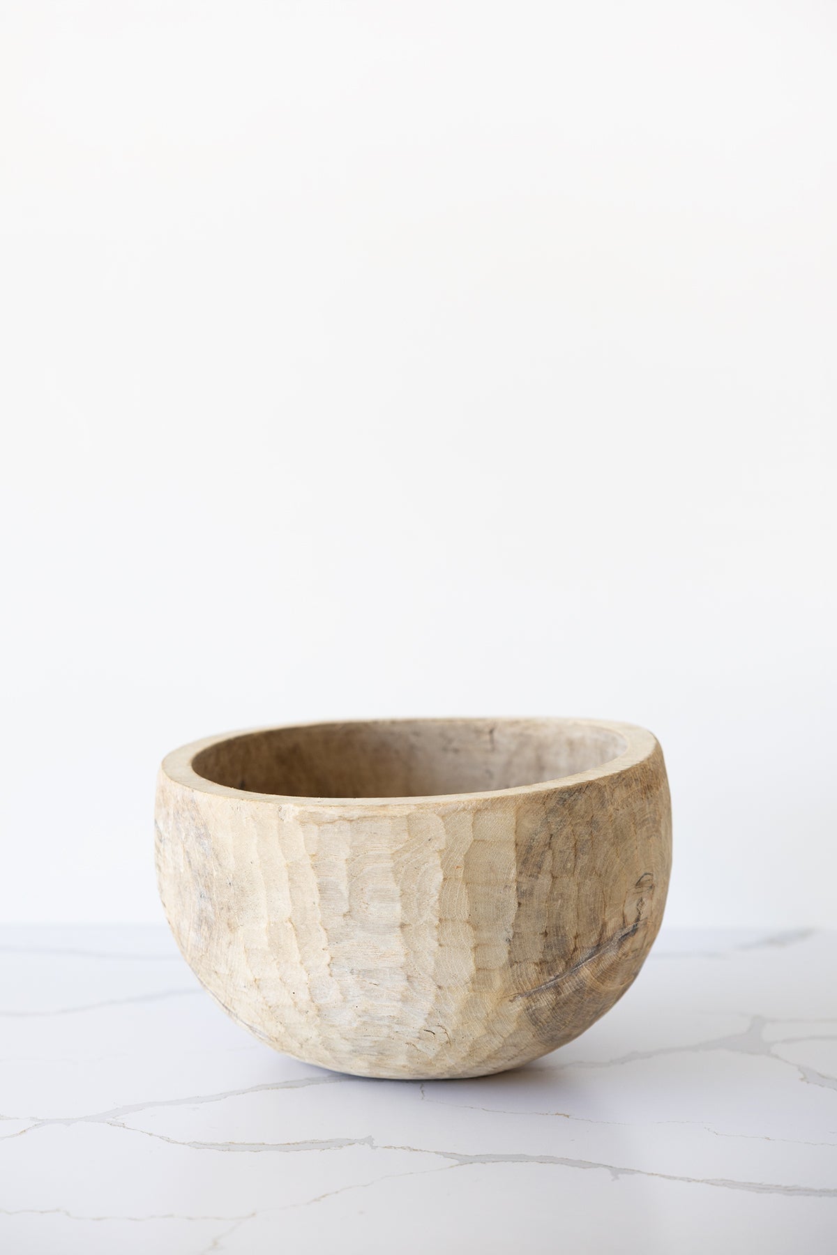 This hand-carved wooden bowl brings organic warmth and texture to any space. The natural grain and subtle chisel markings make each piece a one-of-a-kind accent, perfectly suited for layering into a curated interior.