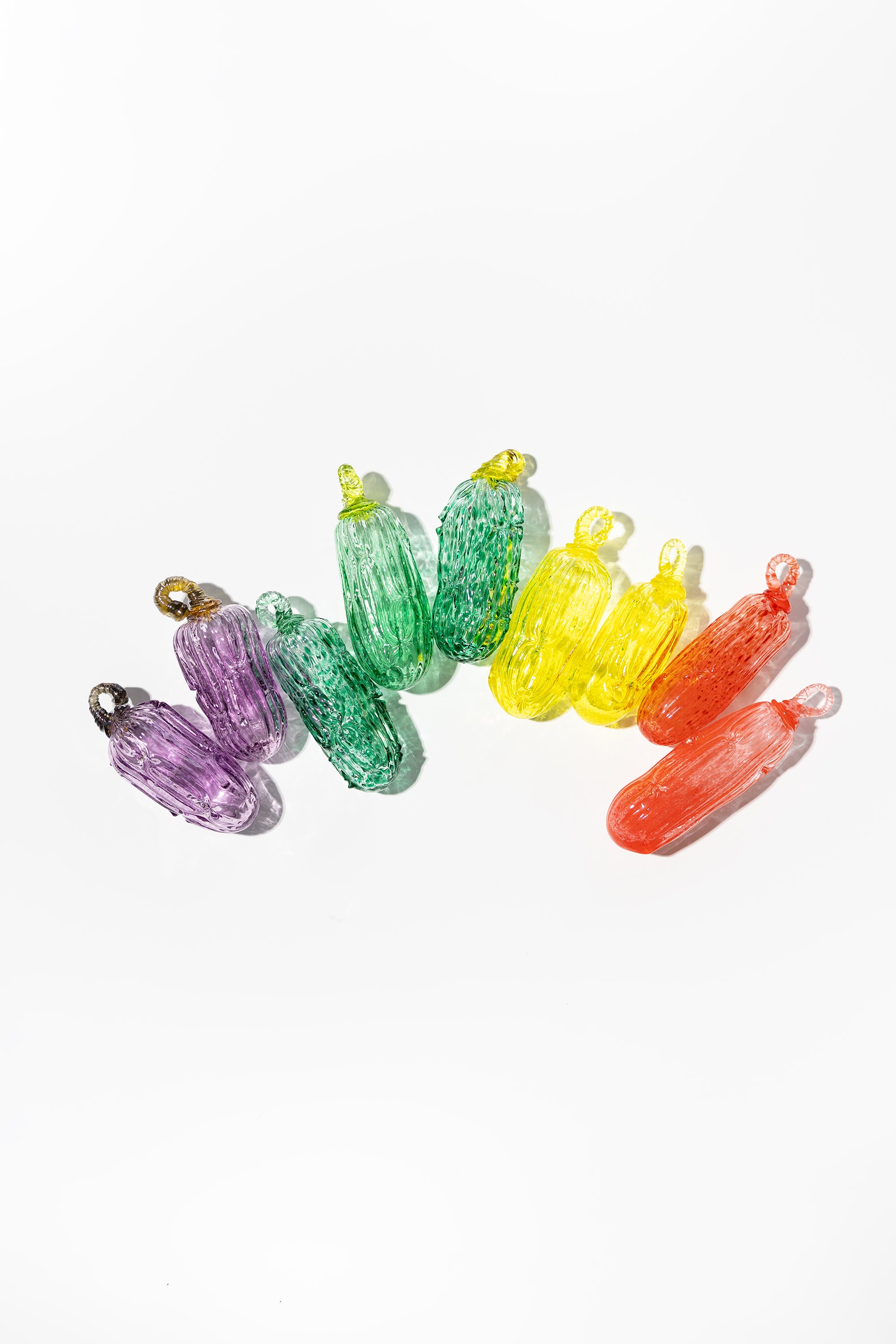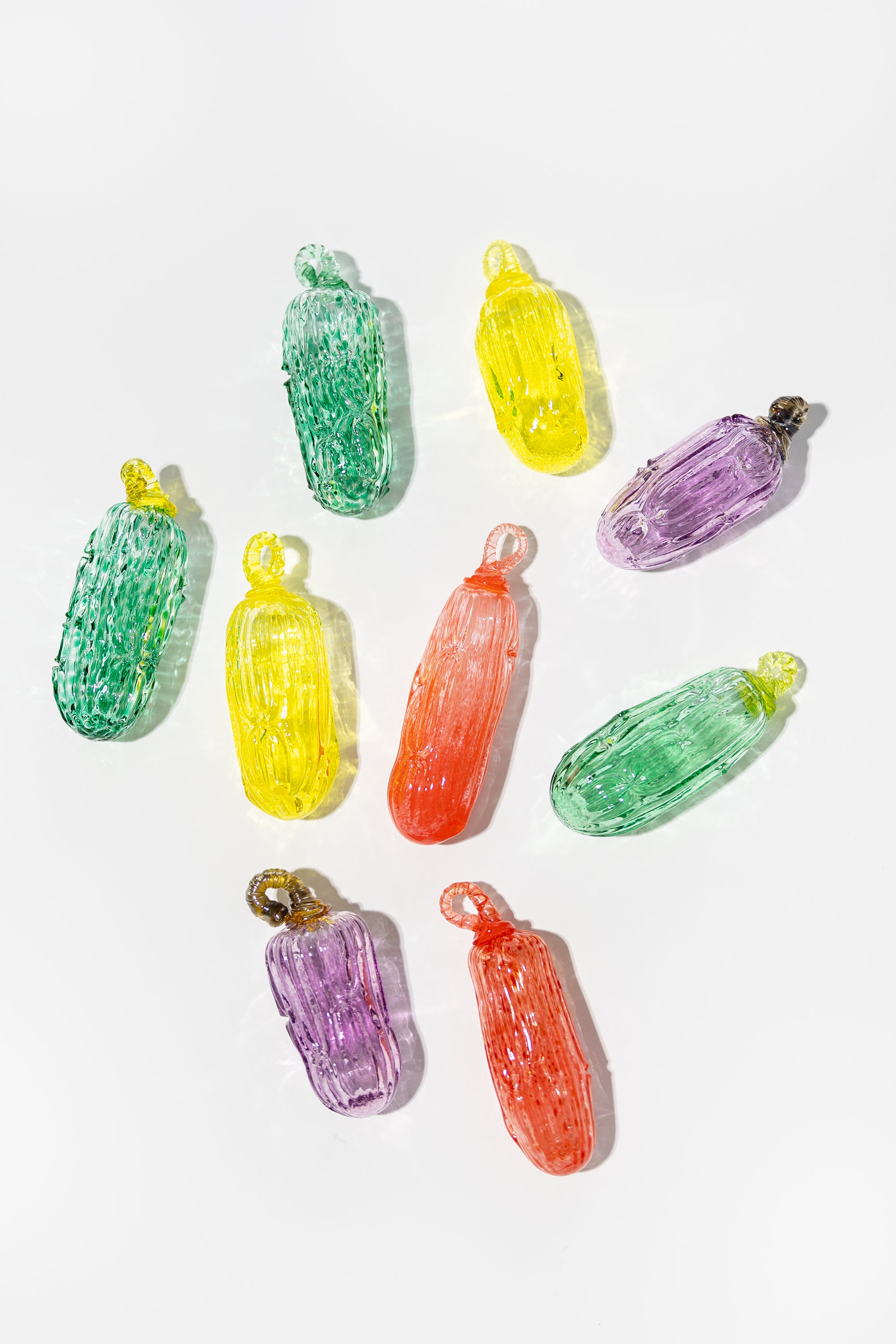 Handblown pickles made by local Boulder, CO artist, Leigh Wyatt. Perfect as ornaments or in a window as a suncatcher all year round.
