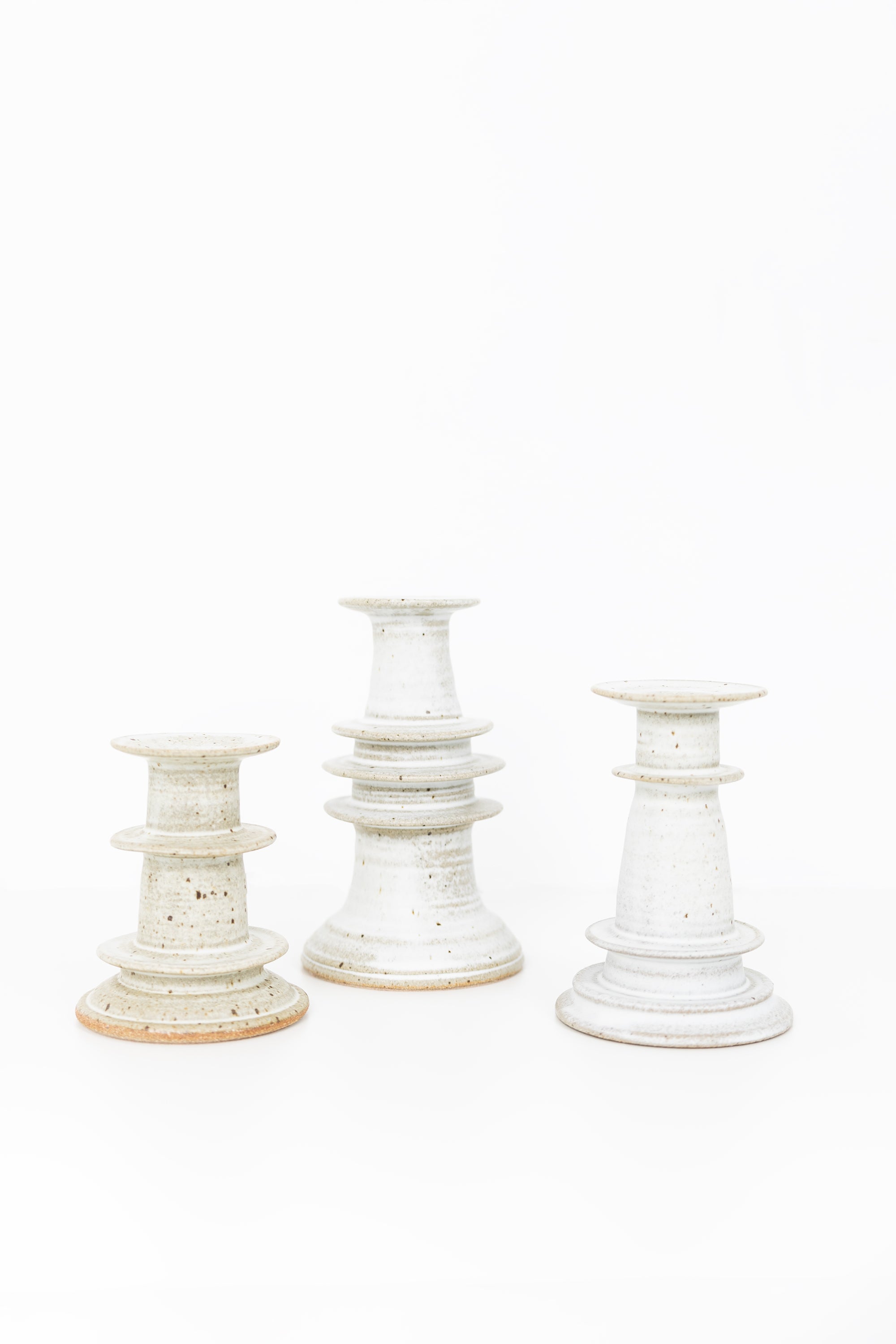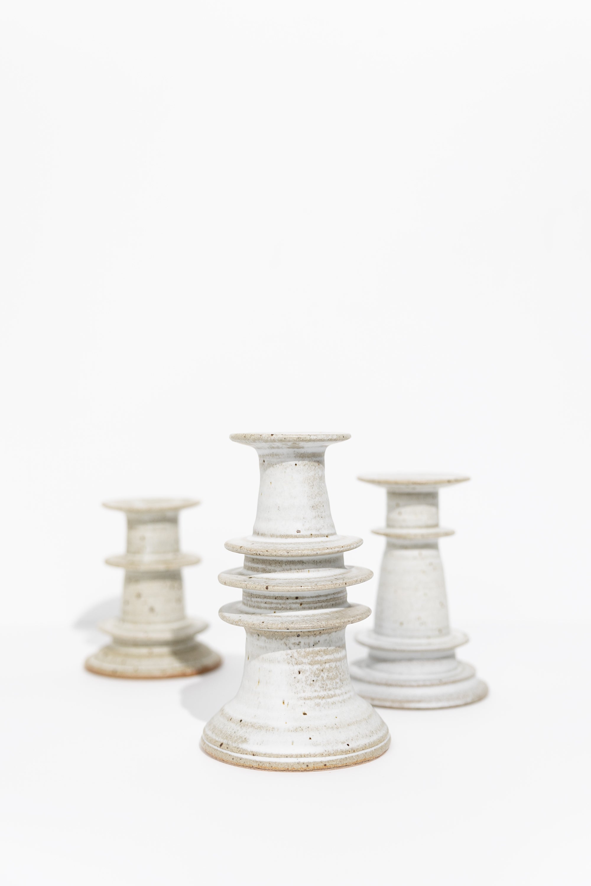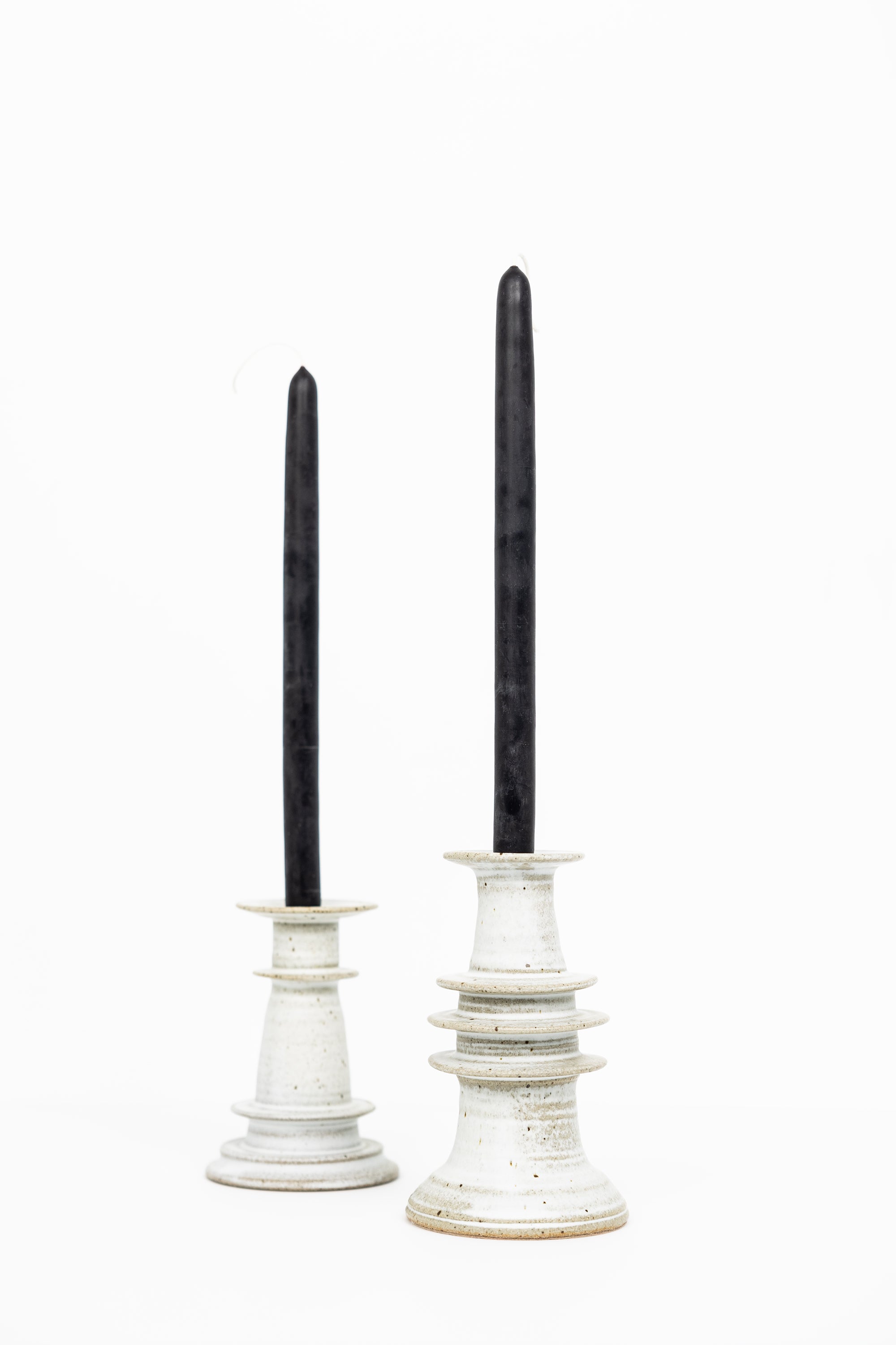 Elevate your space with these beautifully hand-thrown candlesticks, finished in our soft alabaster glaze. Each piece is uniquely shaped, showcasing subtle variations that highlight the artisan’s touch.