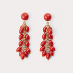 Drop earrings featuring layered acrylic beads suspended from gold-tone chains. Designed for subtle movement.