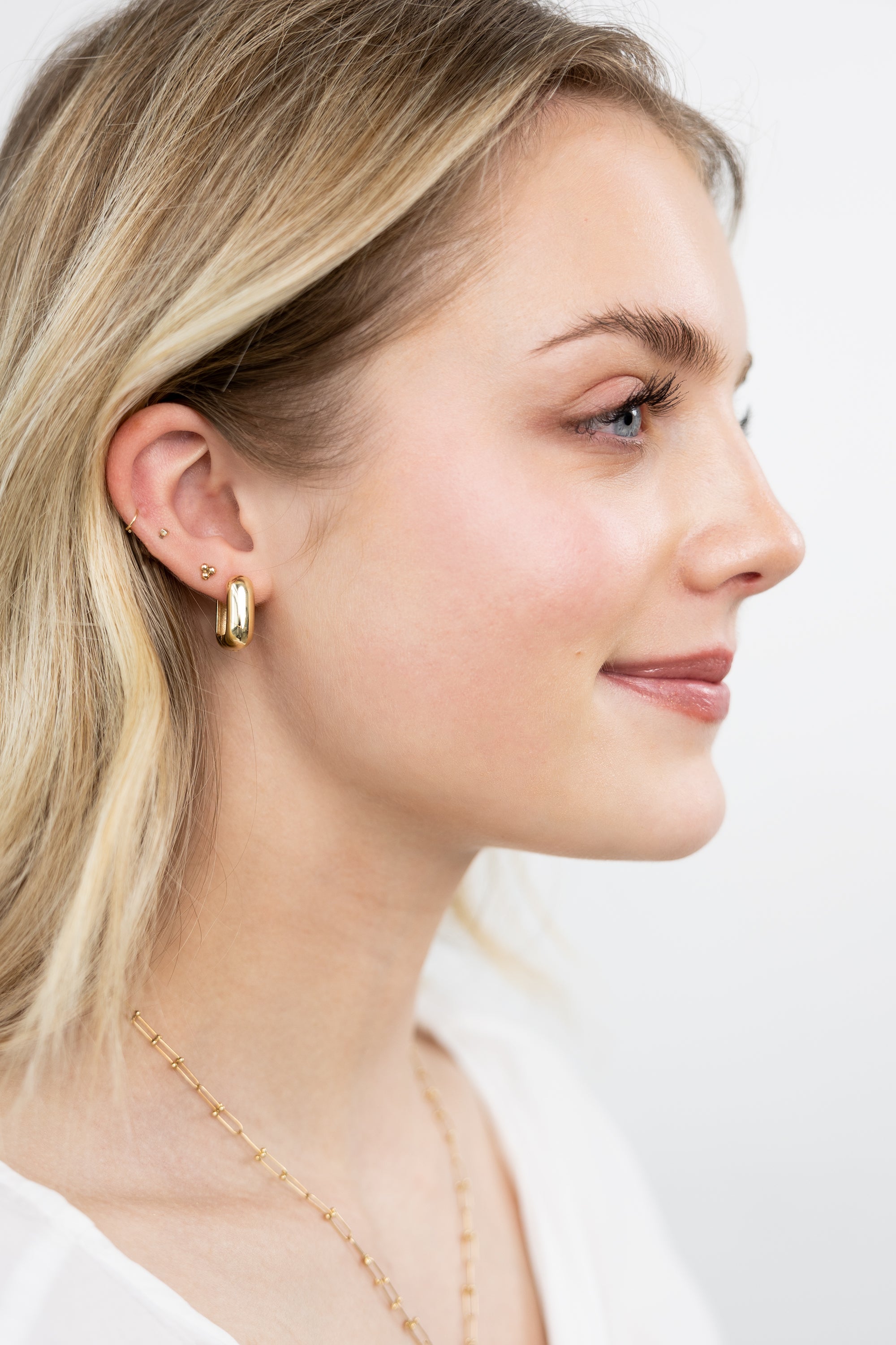 Add a touch of vintage cool to your everyday look with our 14K Chunky Square Hoops. With a square tube design, these hoops are perfect for any occasion, from casual to fancy.