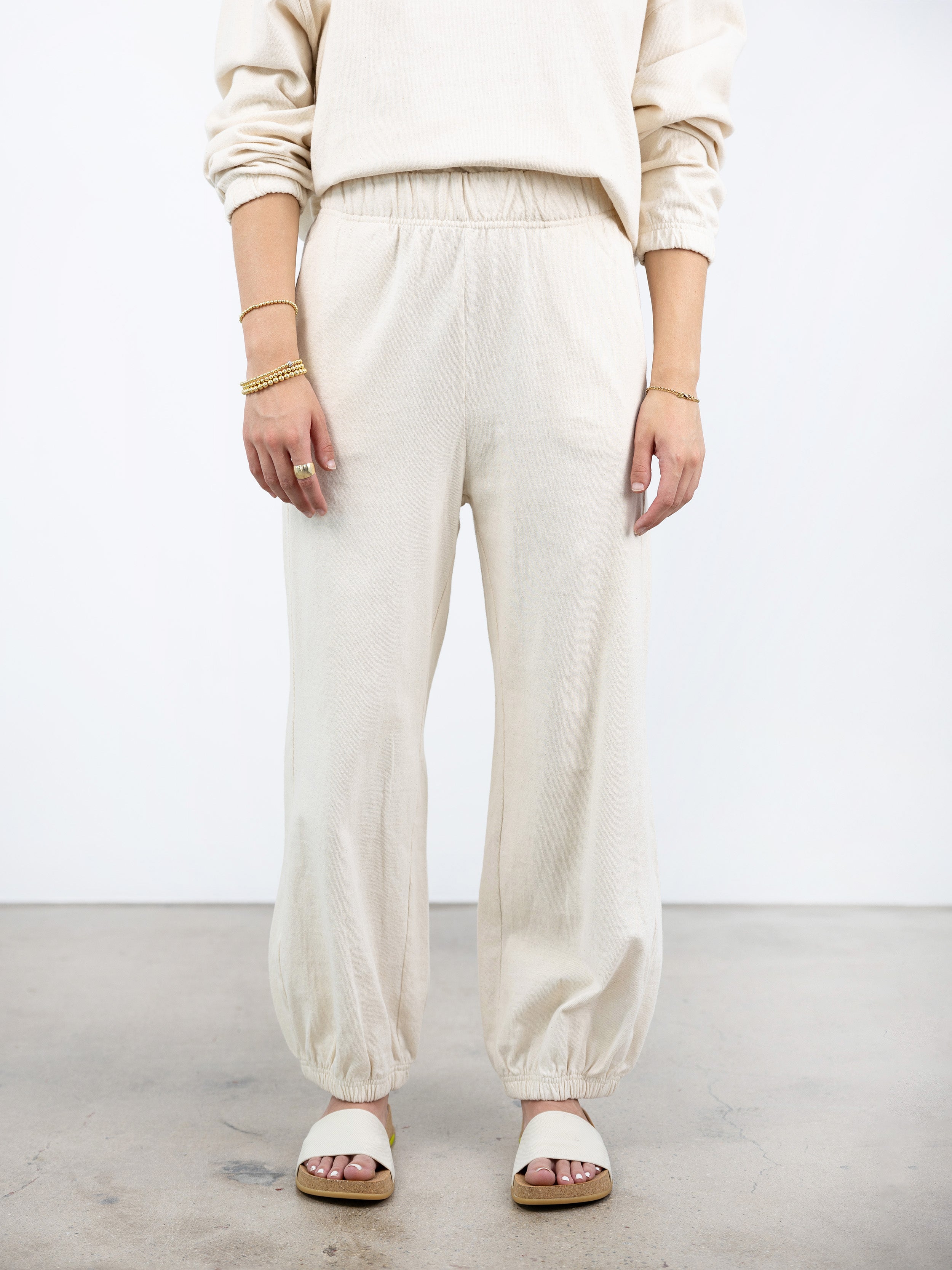 With a unique balloon leg silhouette and thoughtful tailoring, these are an everyday essential you'll reach for year-round. Designed with slimming side panels, discreet side slit pockets, elastic leg openings, and a soft, comfortable waistband — they blend ease with elevated style.