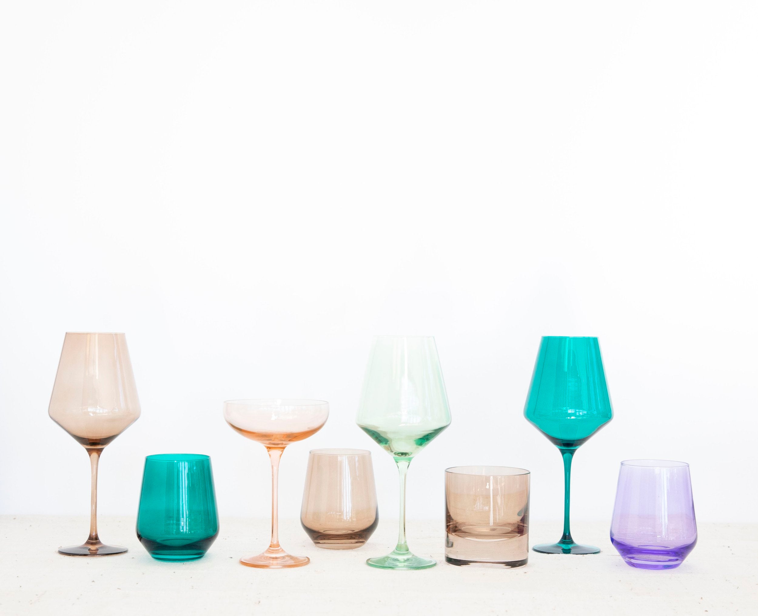Estelle Colored Glass is a collection of hand-blown glassware in rich jewel tones and soft pastels—made by artisans in Poland with over a century of craft behind them. From cake stands to stemware, each piece feels like a modern heirloom—vintage-inspired, beautifully refined, and made to bring a little color (and joy) to the table.