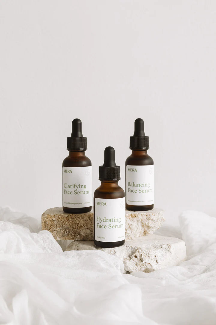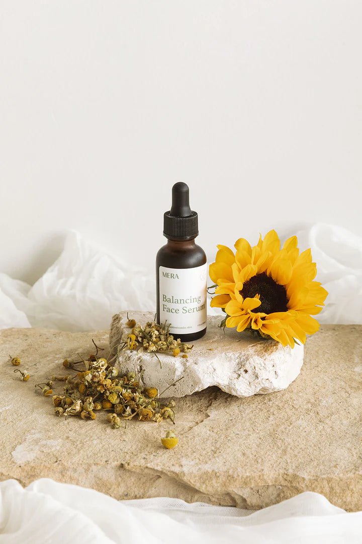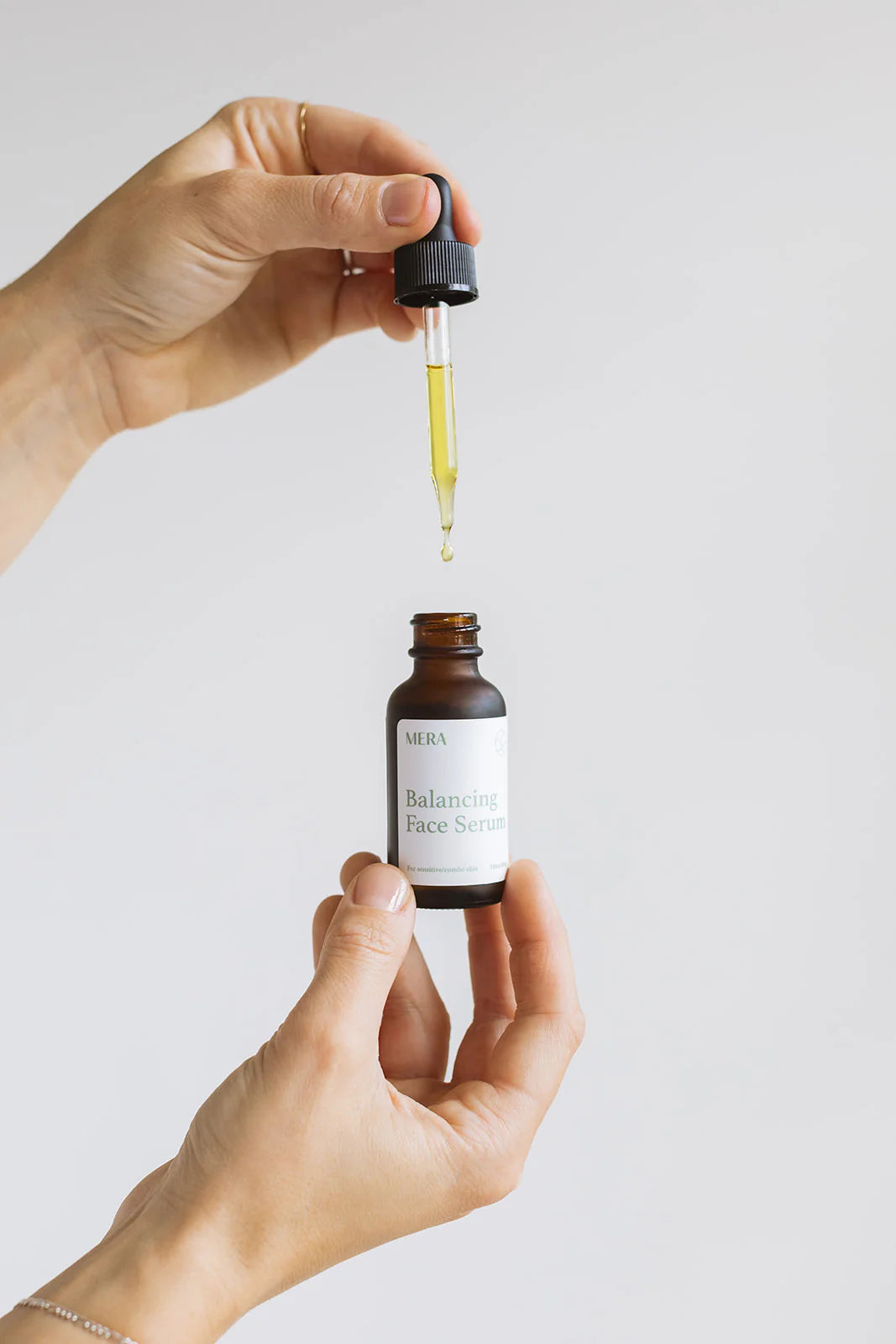 Mera's Balancing Face Serum is specifically designed to support combination, inflamed, and sensitive skin types. It features fast-absorbing oils that hydrate without clogging pores, revealing a wonderfully smooth texture.