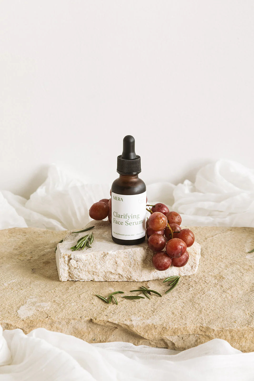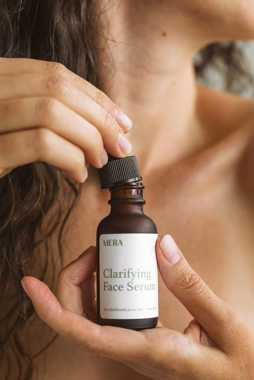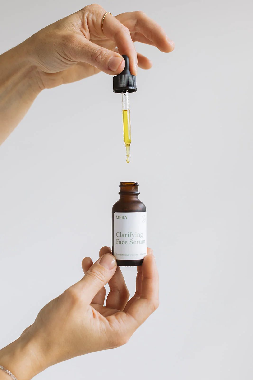 Mera's Clarifying Face Serum is formulated with organic ingredients to address the concerns oily, blemish-prone skin. This serum is lightweight, fast absorbing, and non-comedogenic, meaning it delivers skin-supporting compounds without clogging pores.