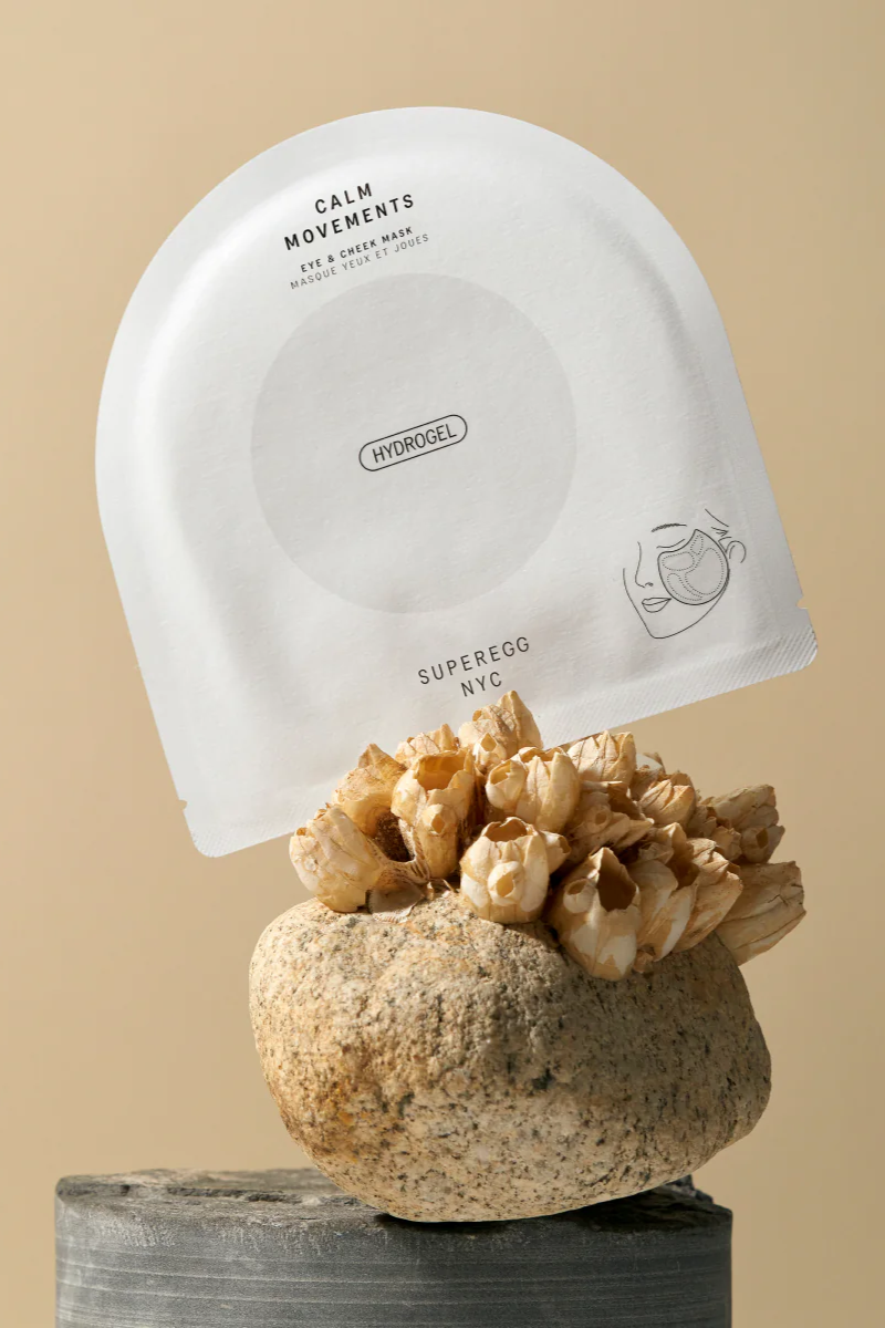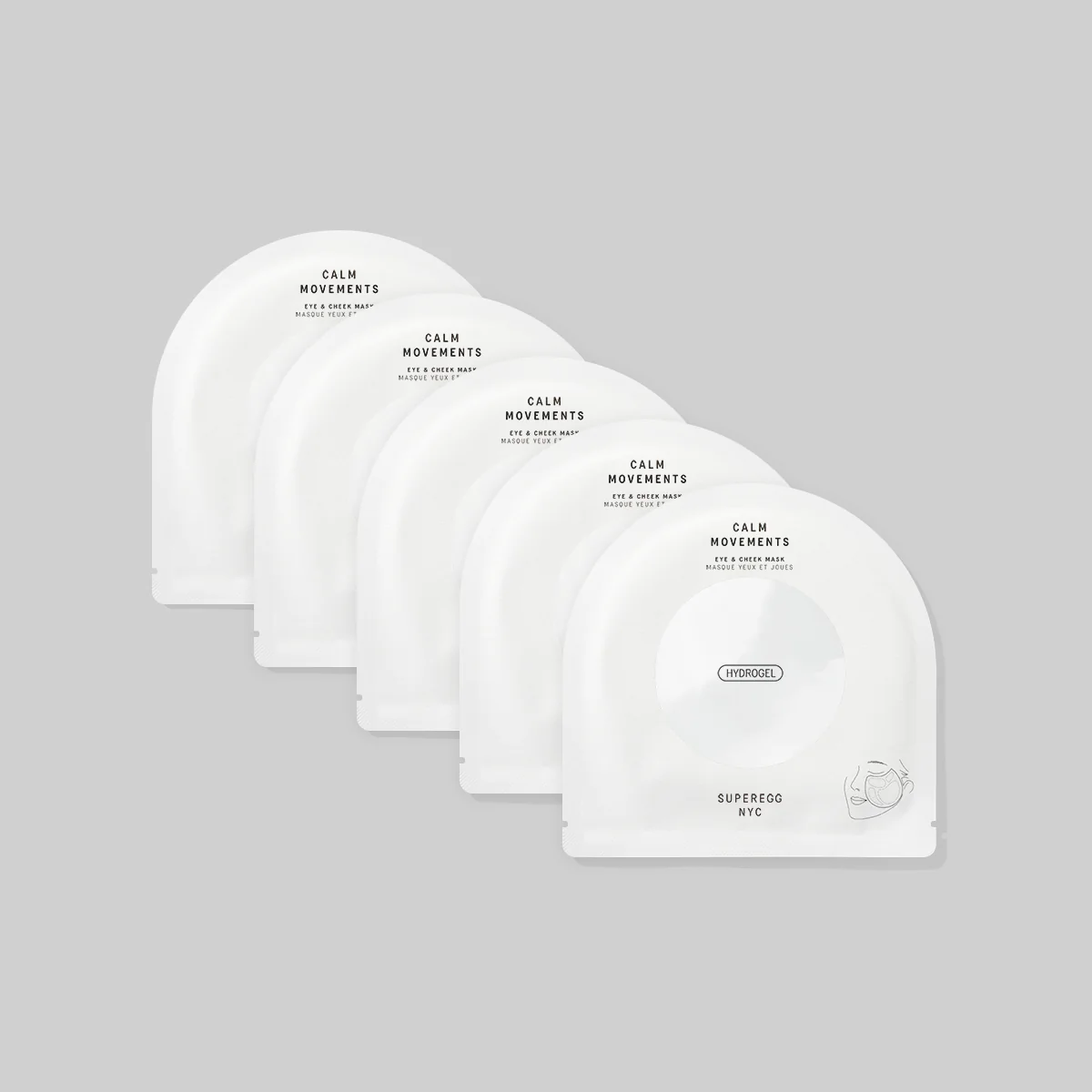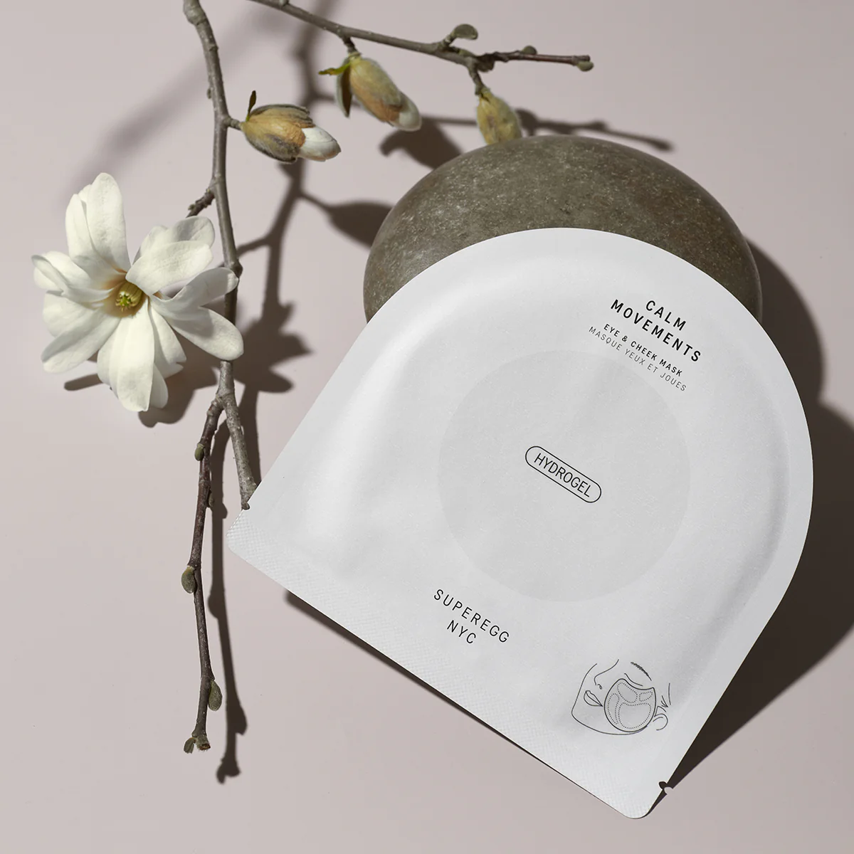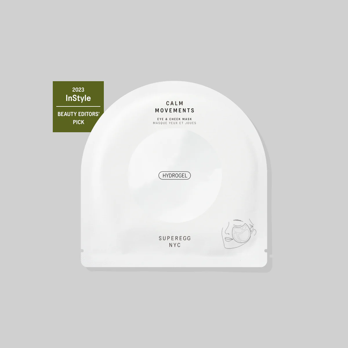 Calm Movements is an eye & cheek mask made of innovative hydrogel to cool, soothe, and boost skin elasticity. This patent-pending, unique and compact mask design is ideal for easy mobility. Roomier than a regular eye mask, this mask provides sufficient coverage of both the eye and cheek area.