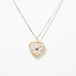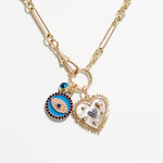 Fall in love with our 14K Abalone + Sapphire Heart Pendant Charm! This charming piece features a heart with rays, showcasing a beautiful abalone backdrop with 5 mini hearts surrounding a sapphire heart. A perfect symbol of love and uniqueness.