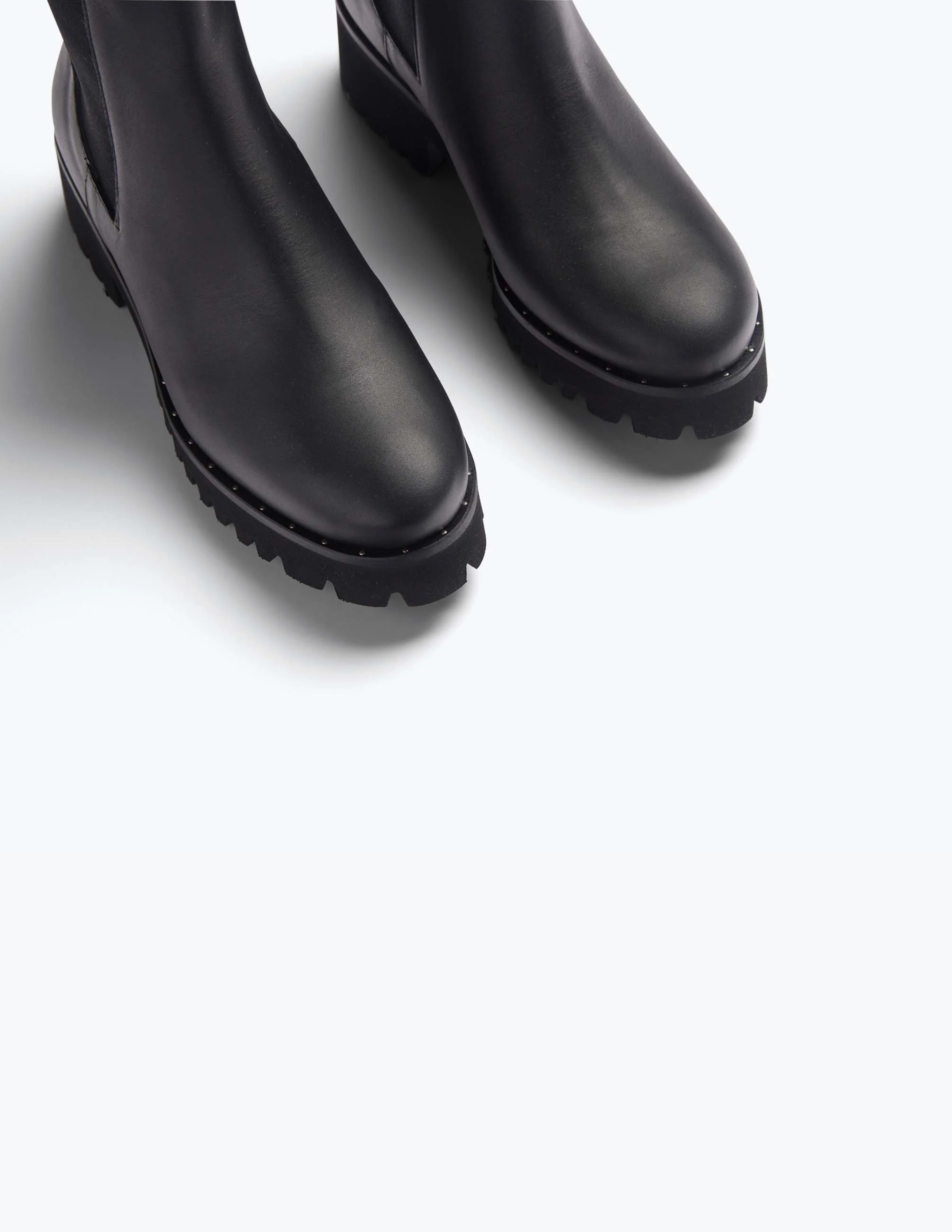 Jessie Ballet Flats - Black Calf with Gold Studs