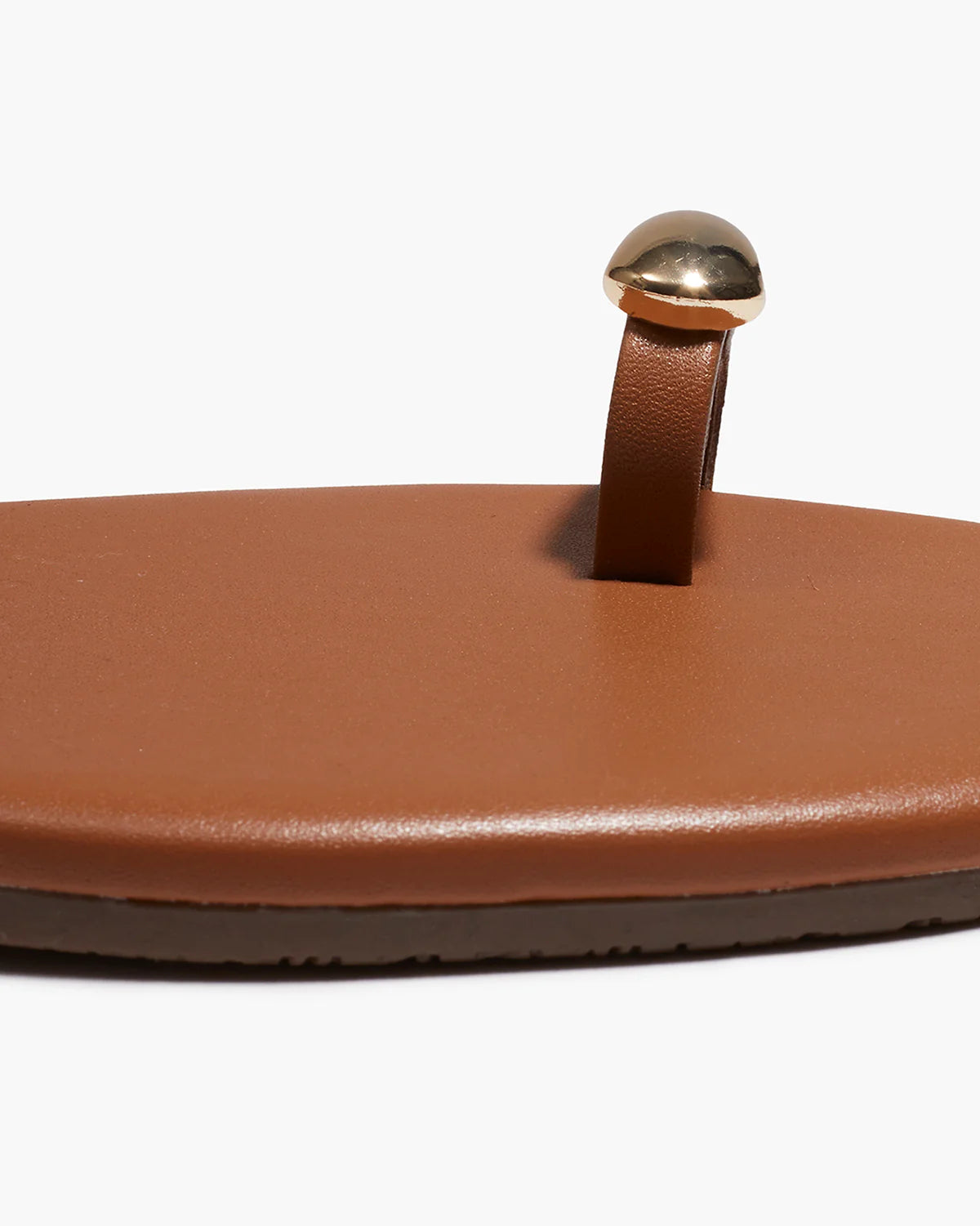 A study in minimalism with a touch of modern luxury. The Colette Sandal by TKEES redefines the classic slip-on with its sculptural gold toe ring detail and sleek, barely-there silhouette. Crafted in supple leather with a soft matte finish, this sandal feels as good as it looks — effortless, elegant, and endlessly versatile.