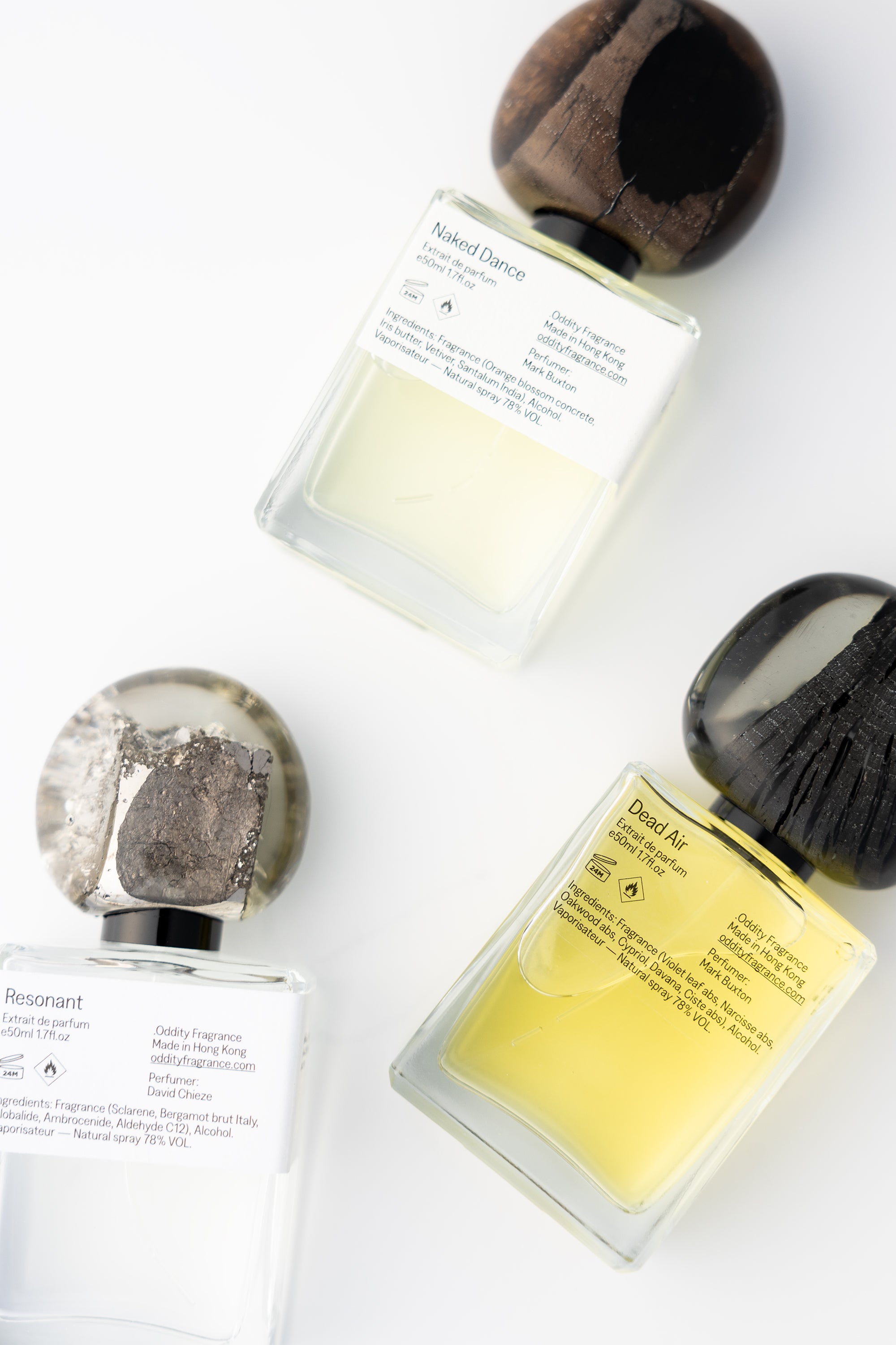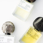 Perfumes are crafted in small batches, using rare and rich ingredients, making them quite distinctive smells. The bottle caps are made by hand from imperfectly beautiful scraps encapsulated in epoxy resin, resulting in unique shapes and shades, each is one of a kind. All fragrances are compliant with the strictest global IFRA standards.