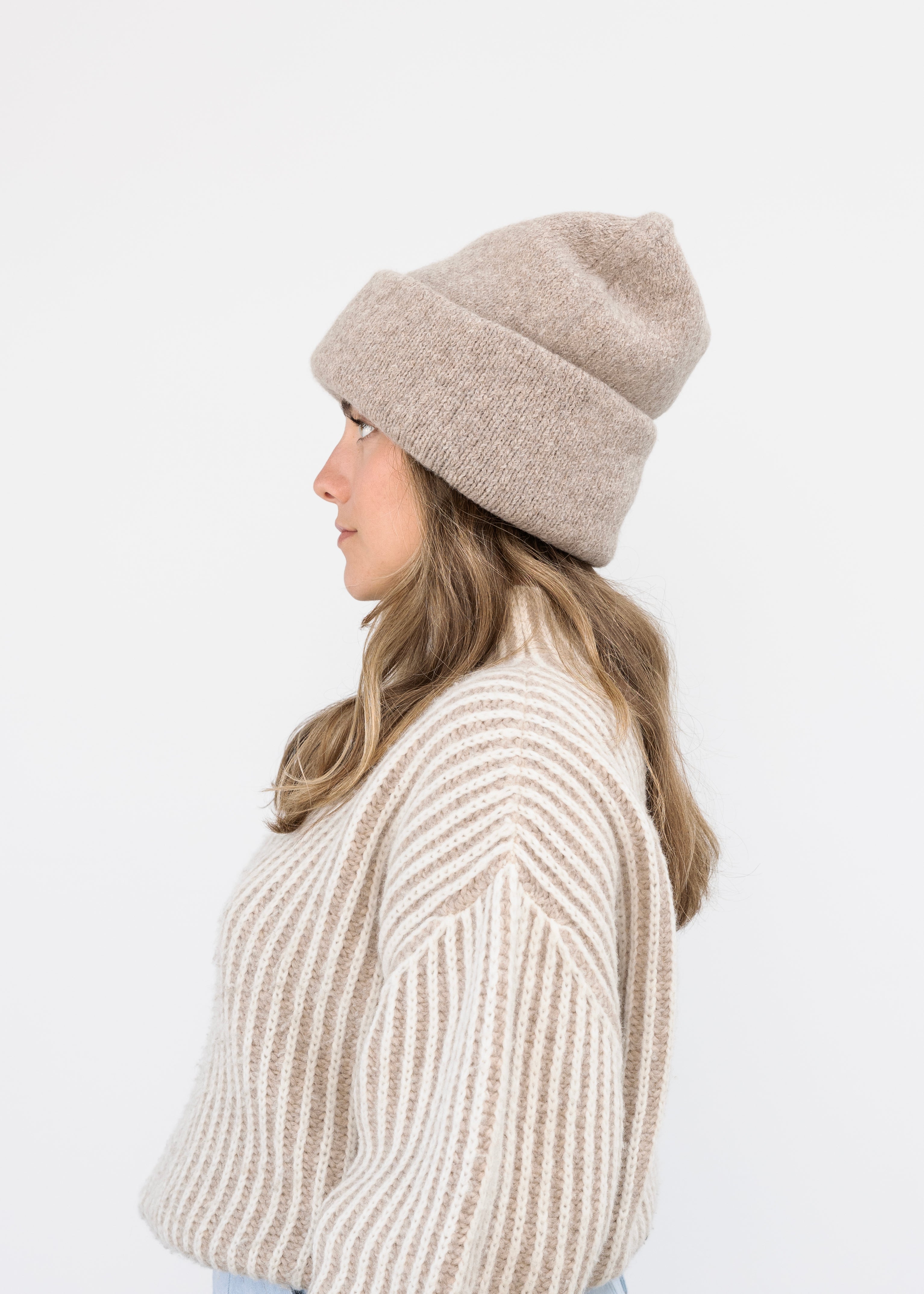 Stay warm and cozy with this Parker Oversized Beanie. Crafted with soft and luxurious hand loomed wool-alpaca blend, this oversized style provides cozy comfort on chillier days. Elevated streetwear for your winter wardrobe!