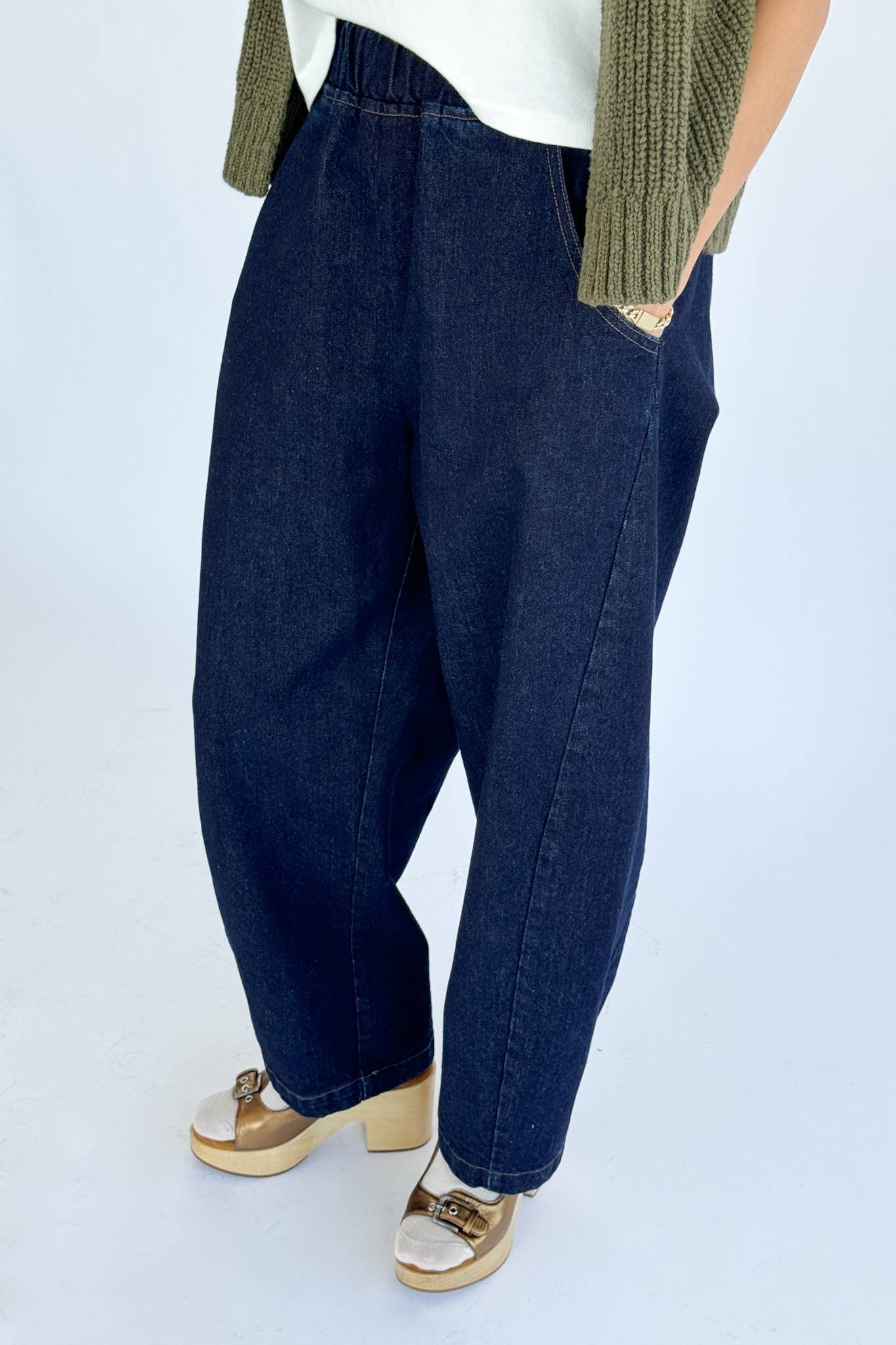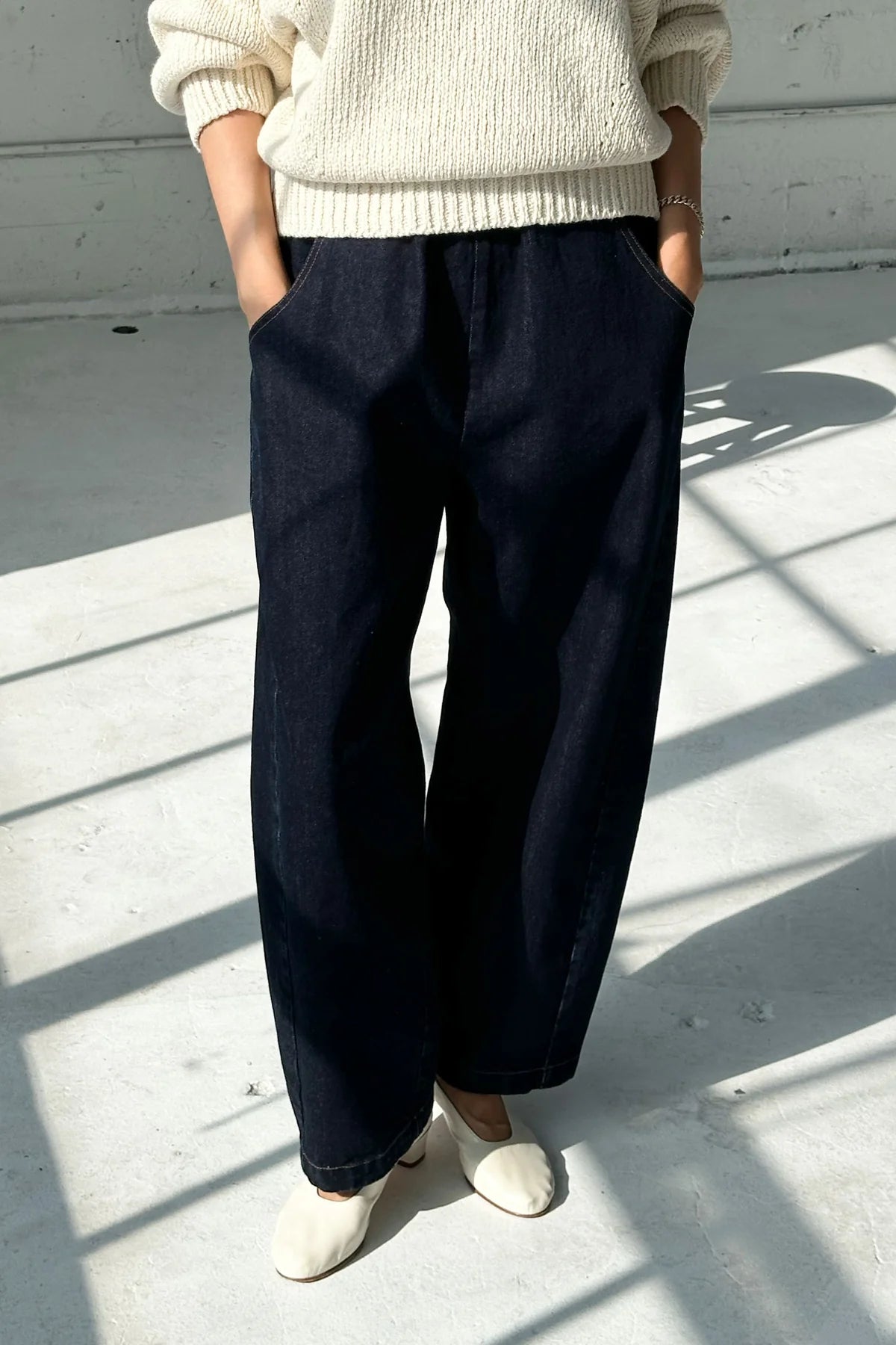 The bestselling pants that transcends seasons. No matter the occasion, the Arc Pants have easily become a daily staple. Thoughtfully designed with details like a slightly curved and cropped leg, unique side panels, and deep pockets. An elasticated, high waist that allows for effortless movement and accessibility.The heavy-weight denim material adds durability and gives a structured look. They're the perfect everyday pants, made easy to style.