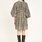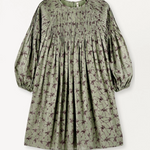 A lightweight cotton mini dress featuring hand-smocked detailing across the front and back yoke. Designed with raglan sleeves, gathered cuffs, and a button-loop closure for a relaxed and comfortable fit. Perfect to pair with boots for the fall!