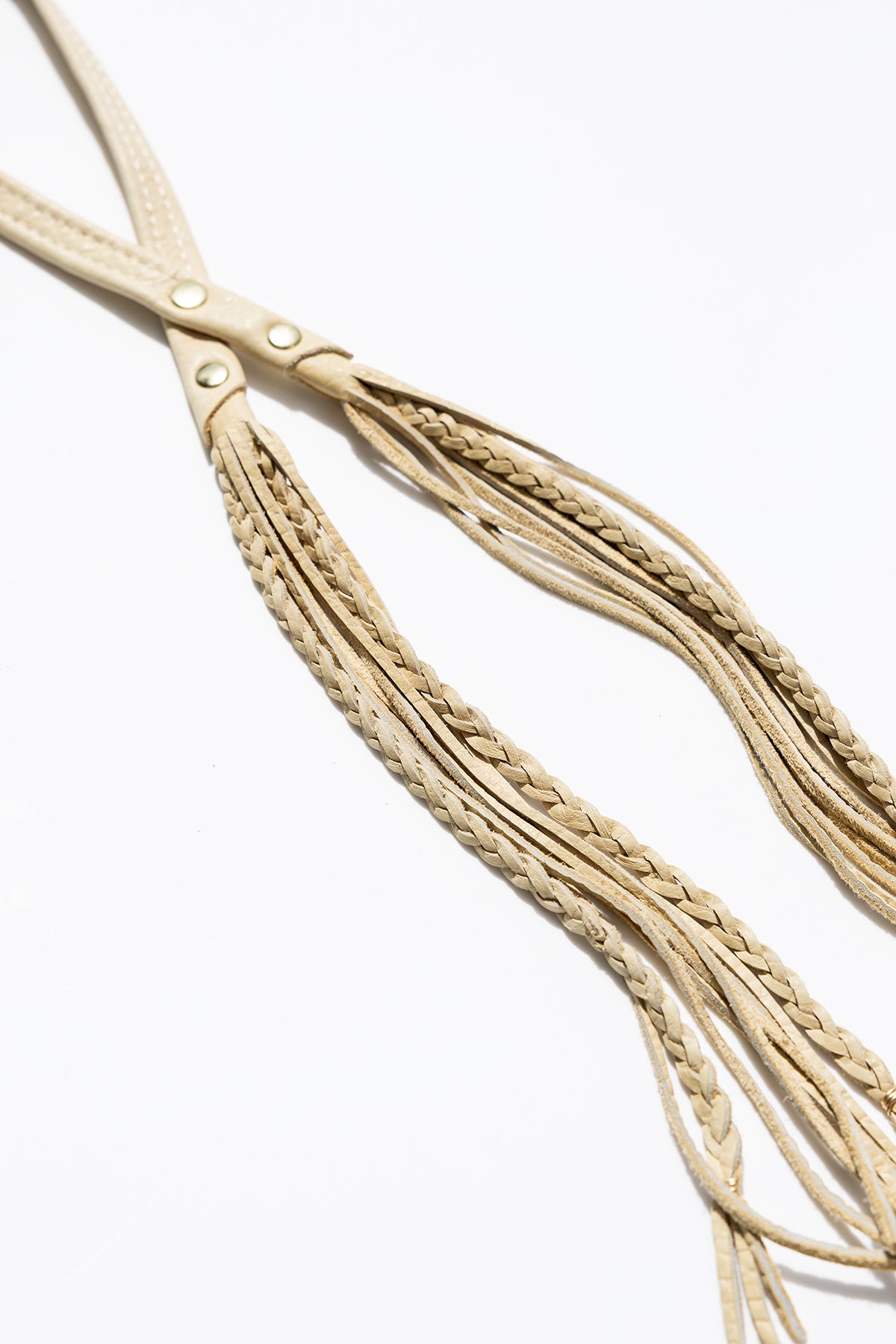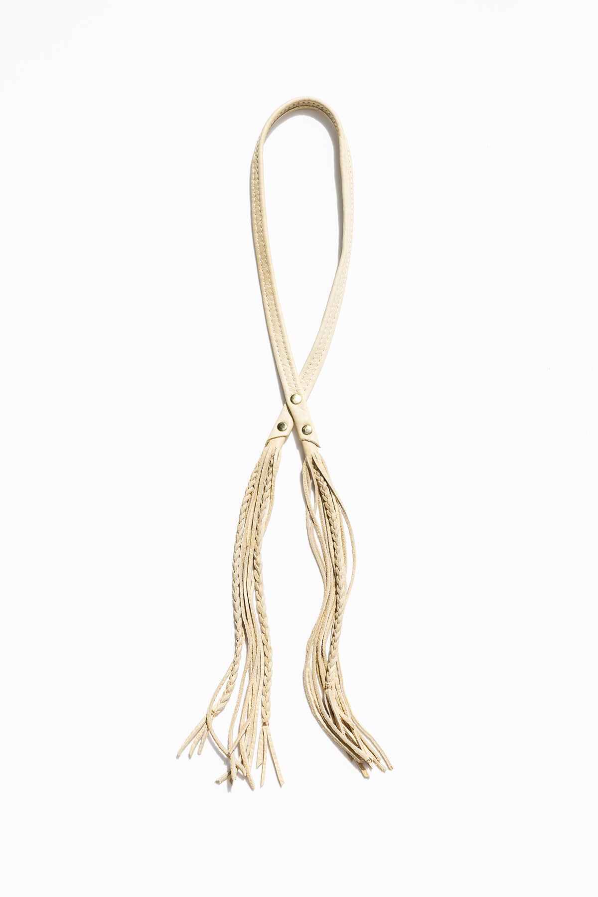 Made from ethically sourced, ivory-dyed deer leather, this soft and durable accessory will develop a beautiful patina over time. Designed for men and women, the long, buttery fringe flows gracefully, adding just the right touch of movement and style.