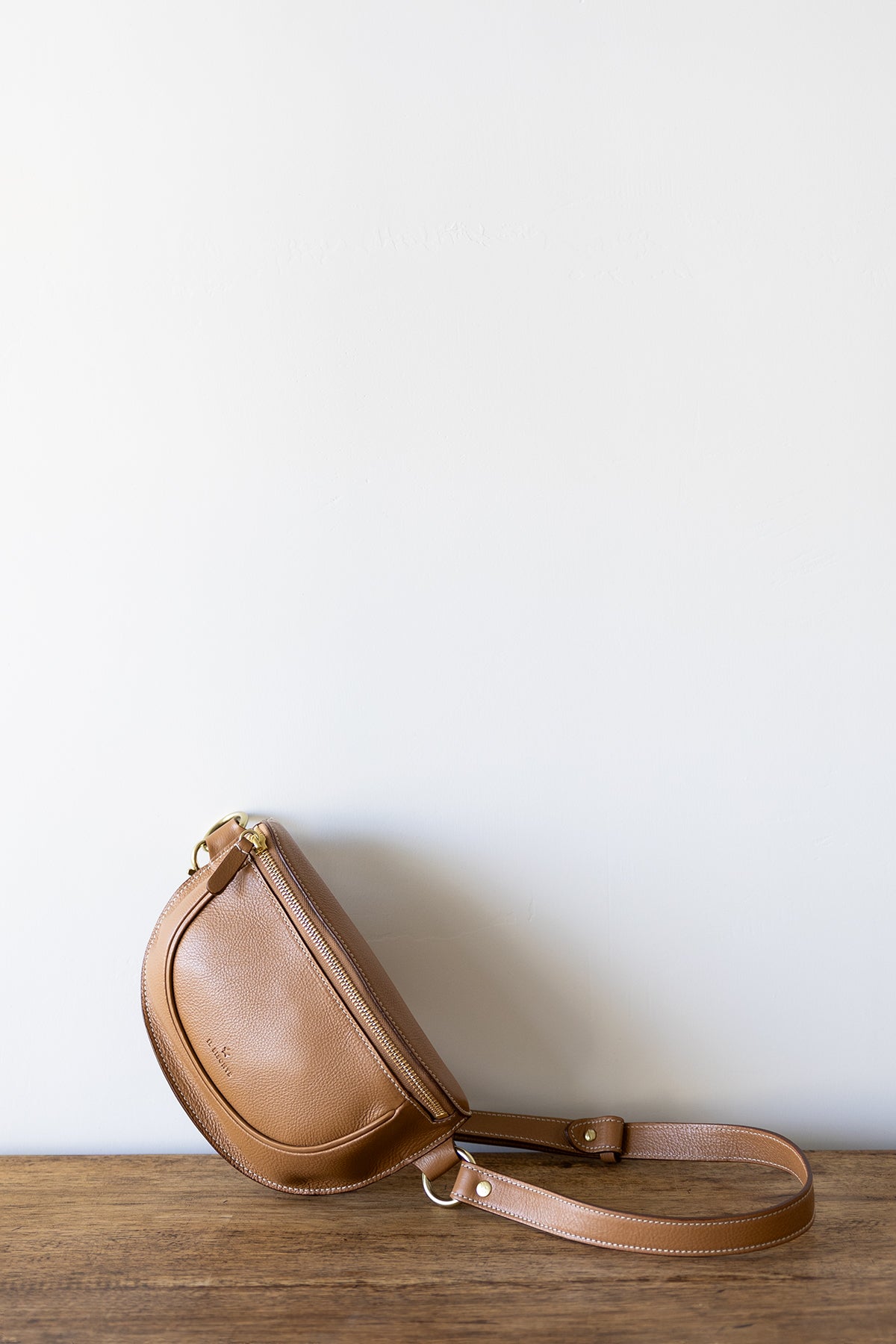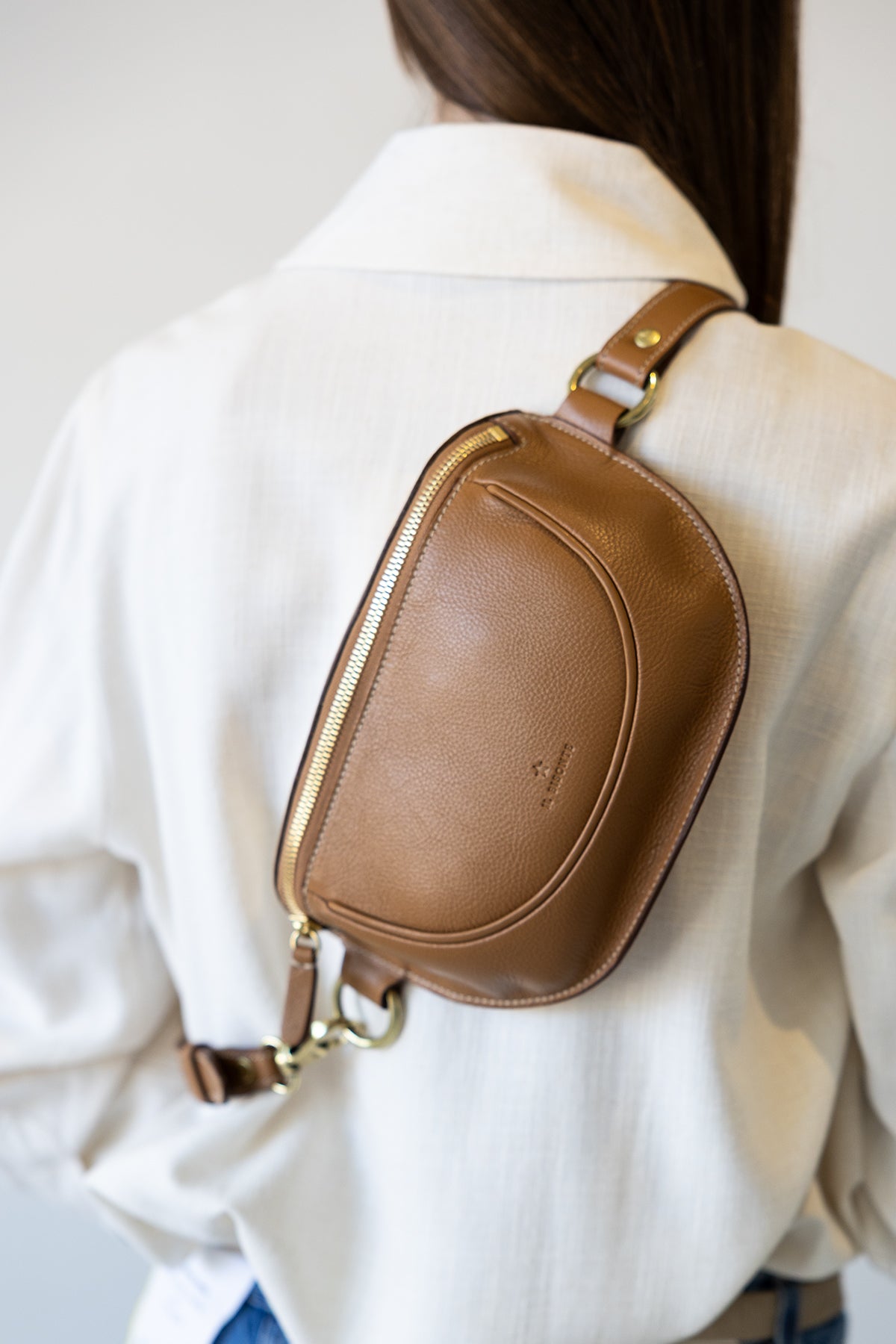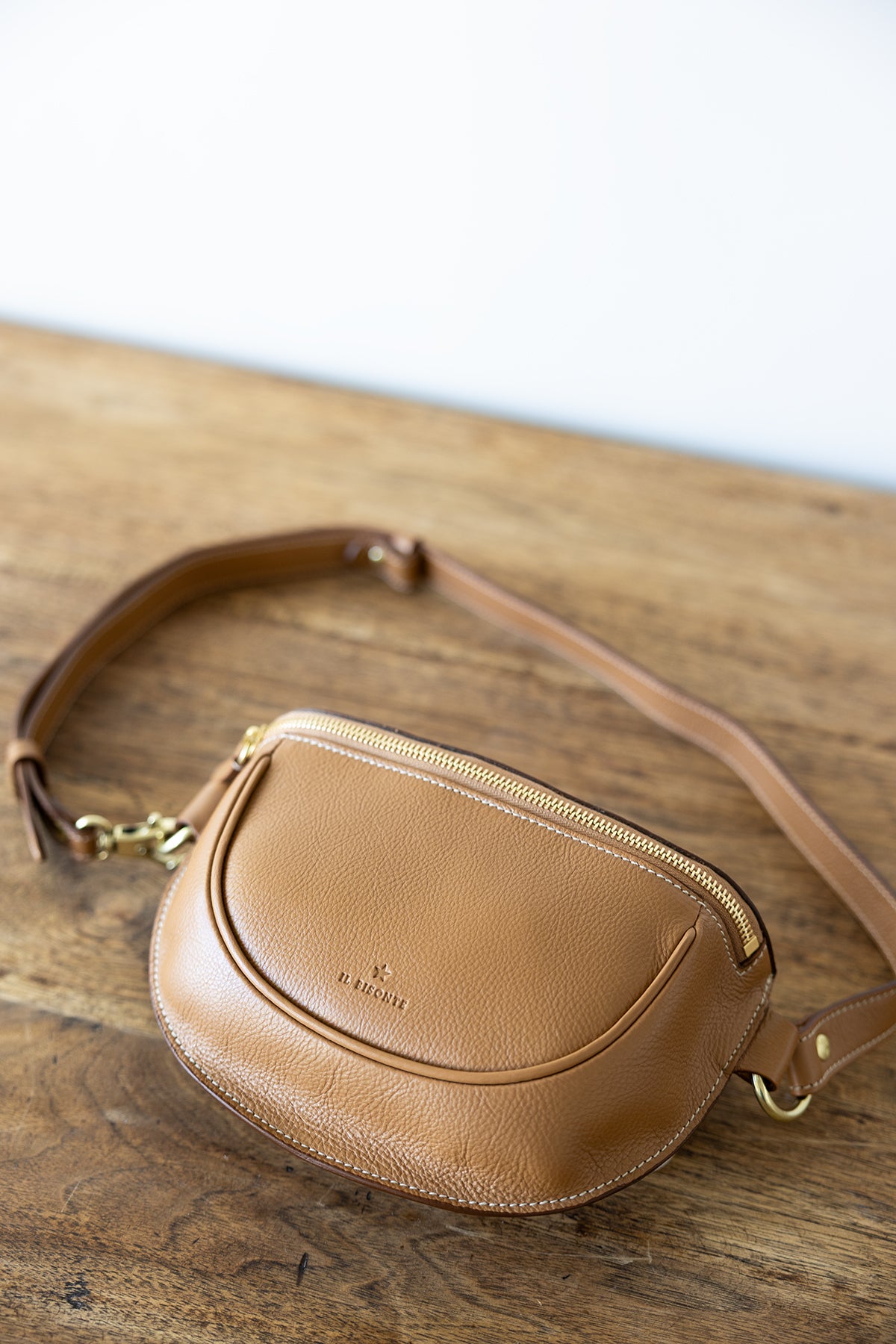 Crafted from rich vegetable-tanned leather, the Oliveta Belt Bag by Il Bisonte blends timeless Italian craftsmanship with everyday versatility. Designed to be worn at the waist or styled crossbody, the adjustable studded strap ensures a perfect fit. The bag opens with a smooth zip closure, finished with a hand-sewn leather pull for a refined touch. Inside, a cotton canvas lining adds durability and understated elegance. 100% made in Italy within Il Bisonte’s renowned artisan supply chain.