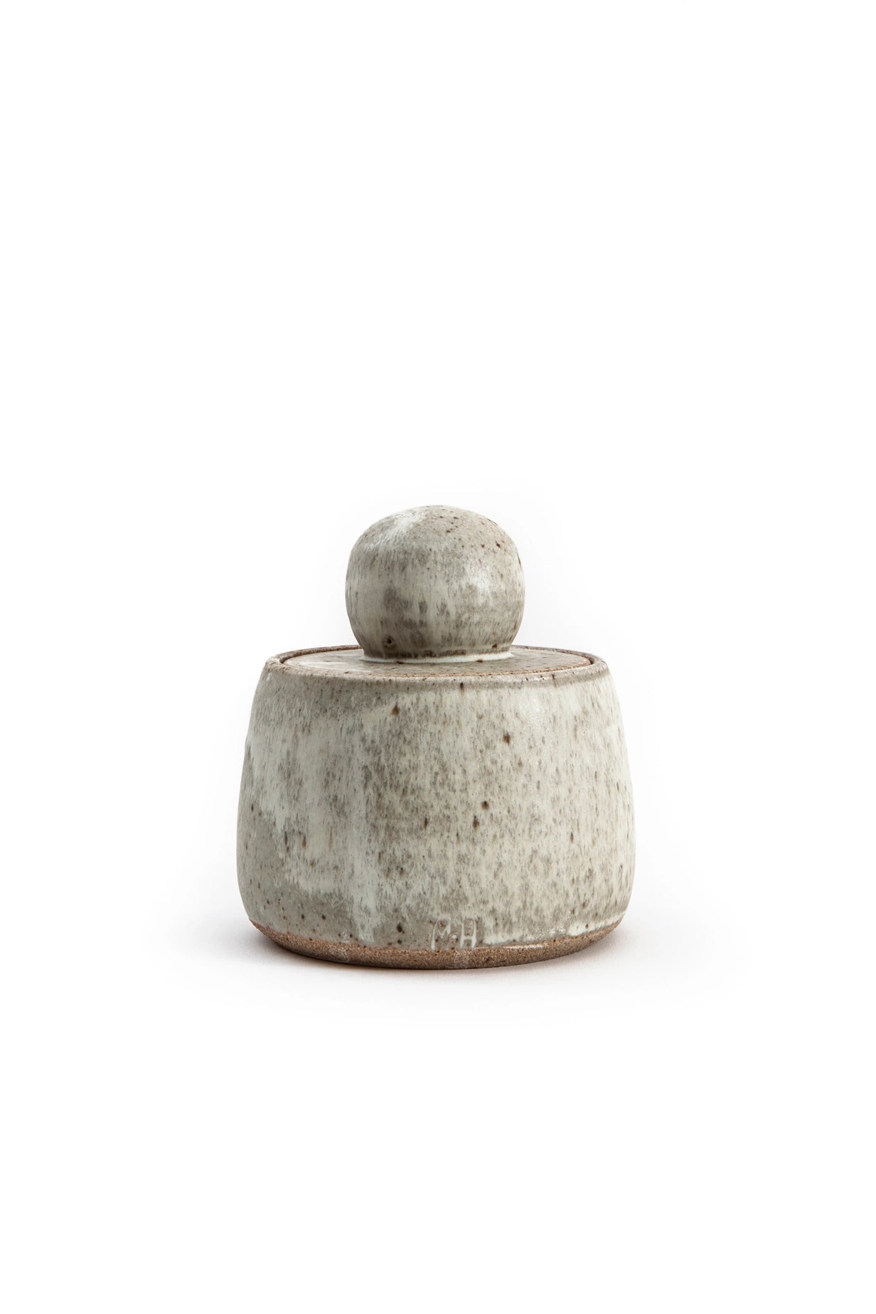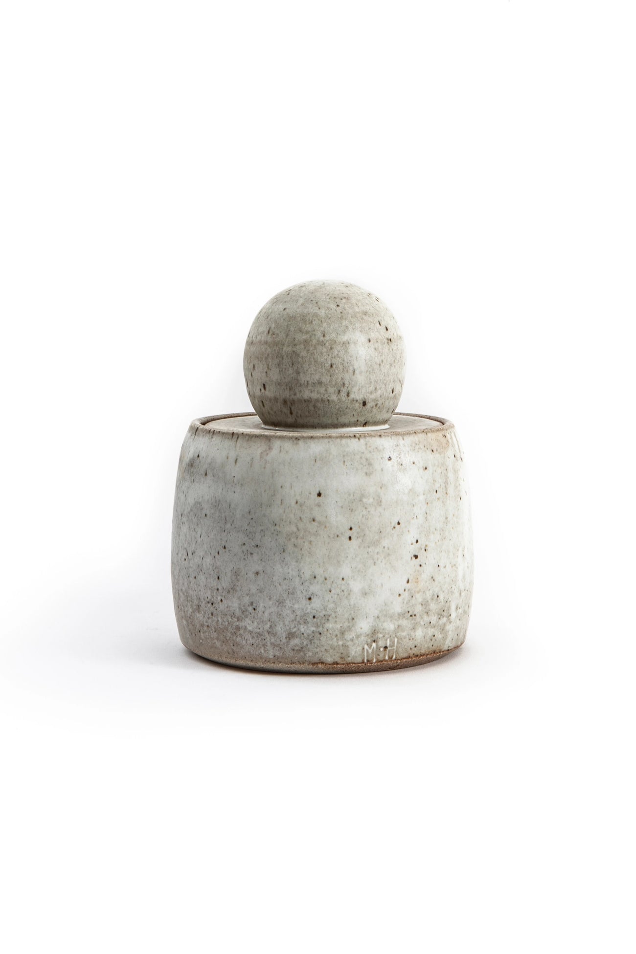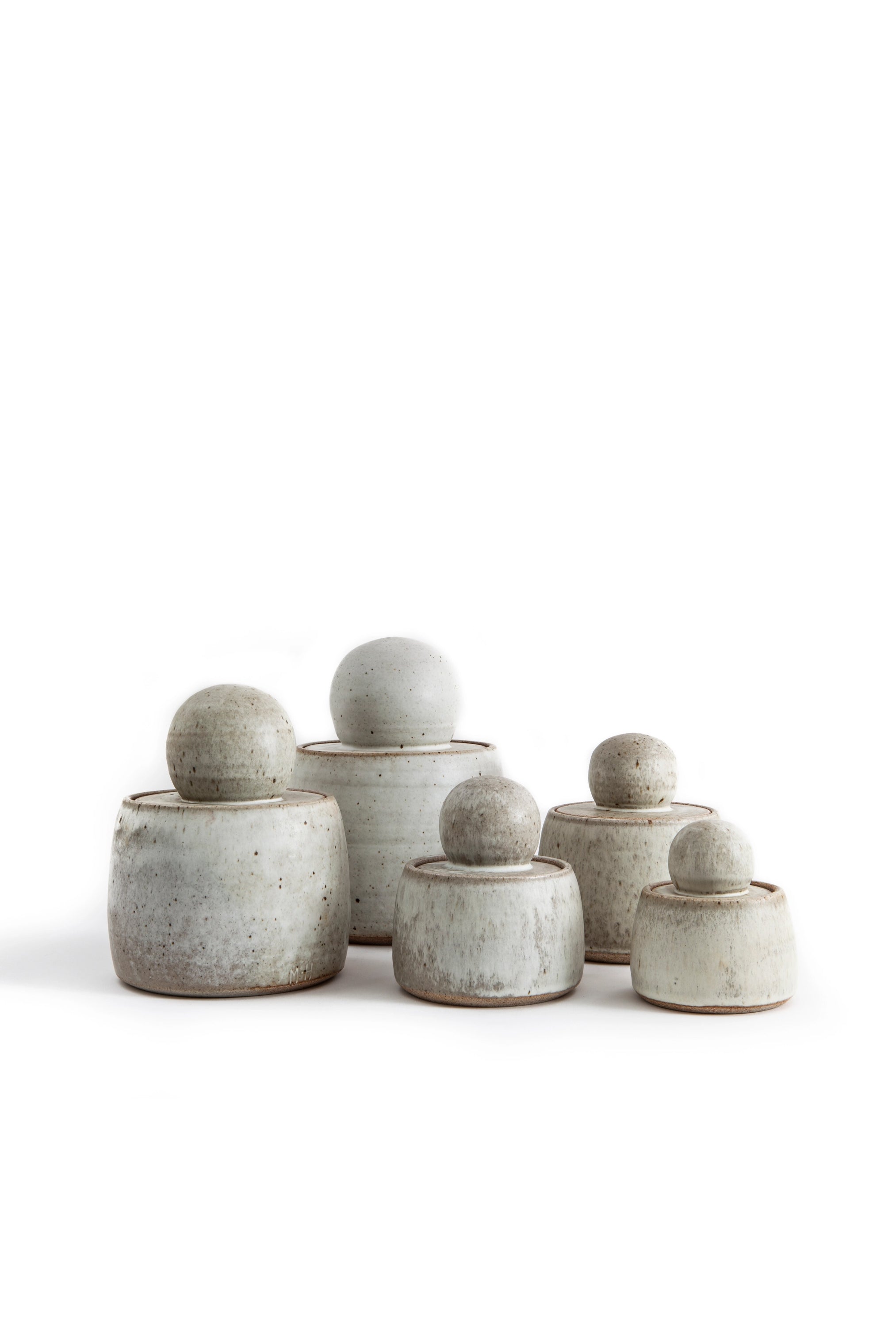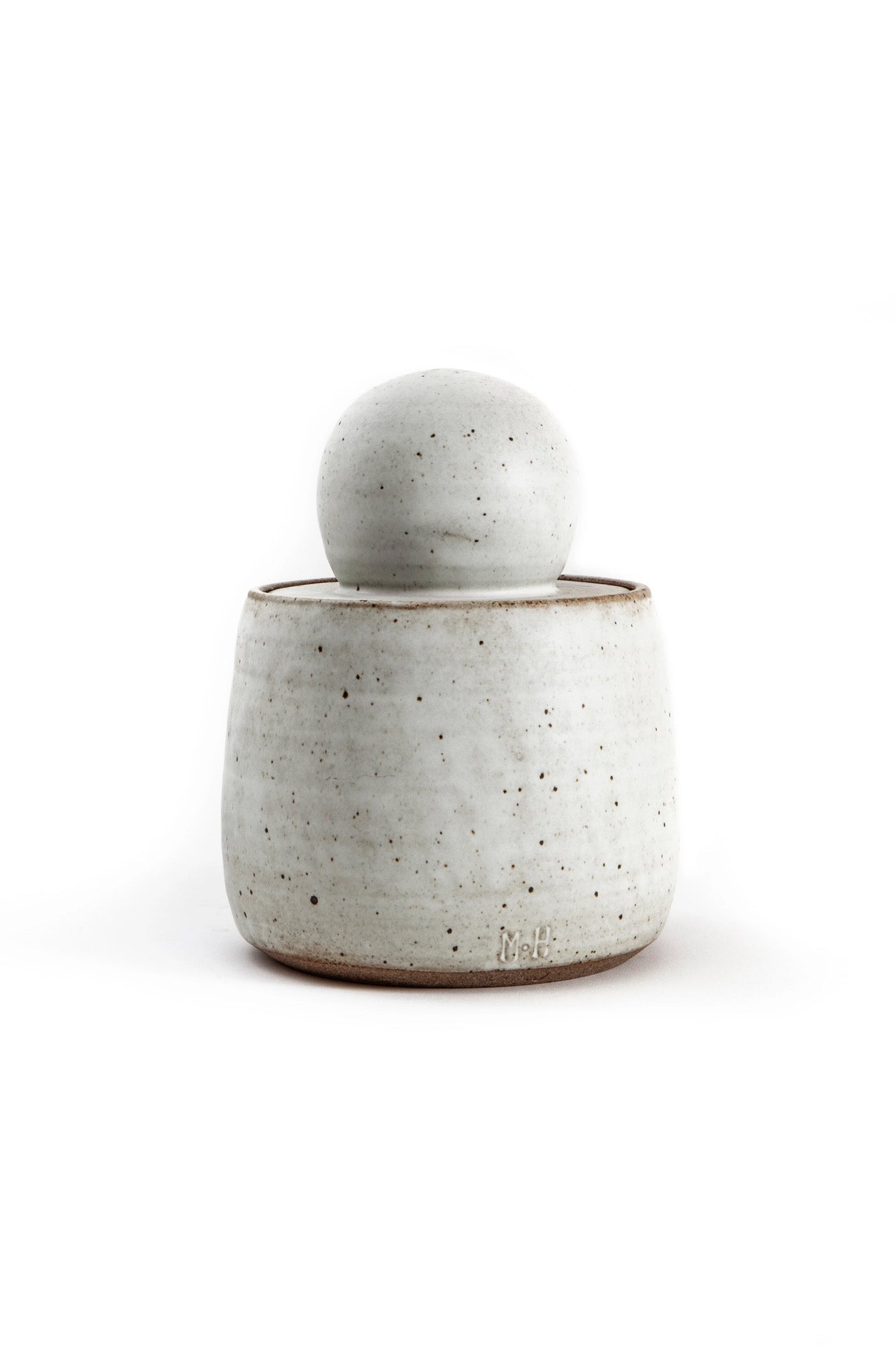 Our hand-thrown stoneware jars are accented with large chunky knobs and finished with a matte glaze in varying shades of white and cream.