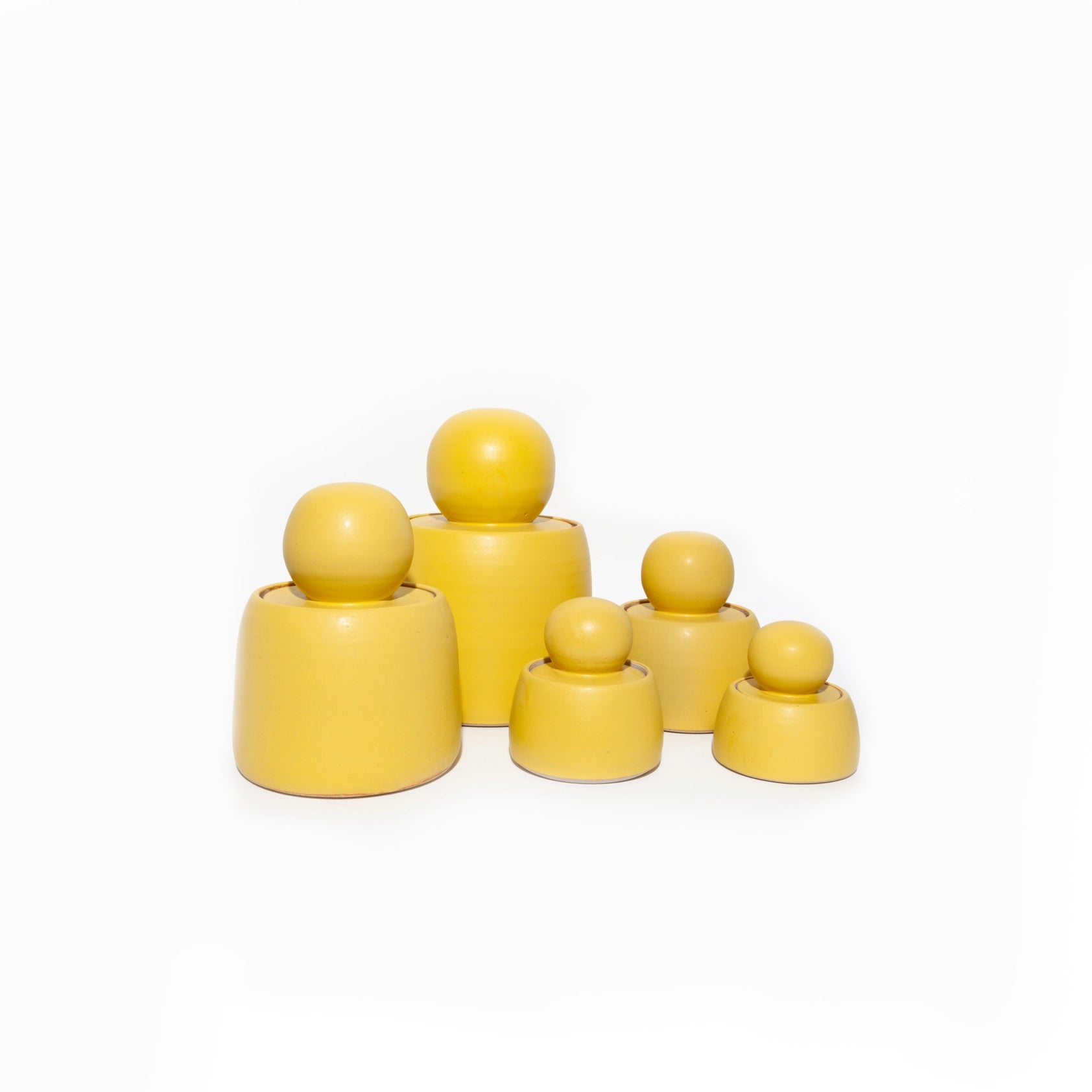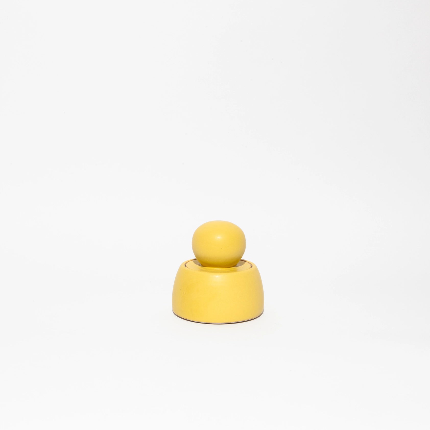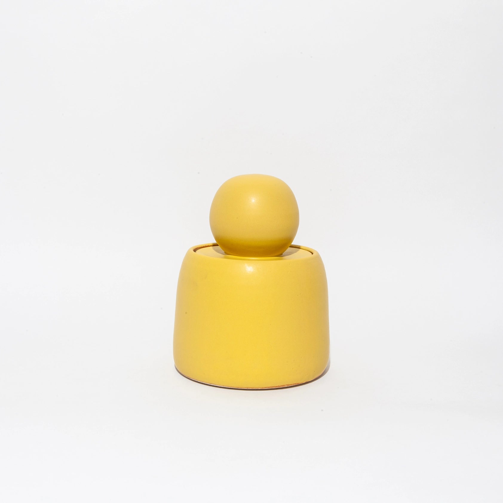Our Popular stash jars now available in a sunny yellow glaze! Our hand thrown jars are accented with large chunky knobs and thrown from a white stoneware that highlights the bright saffron yellow color.