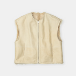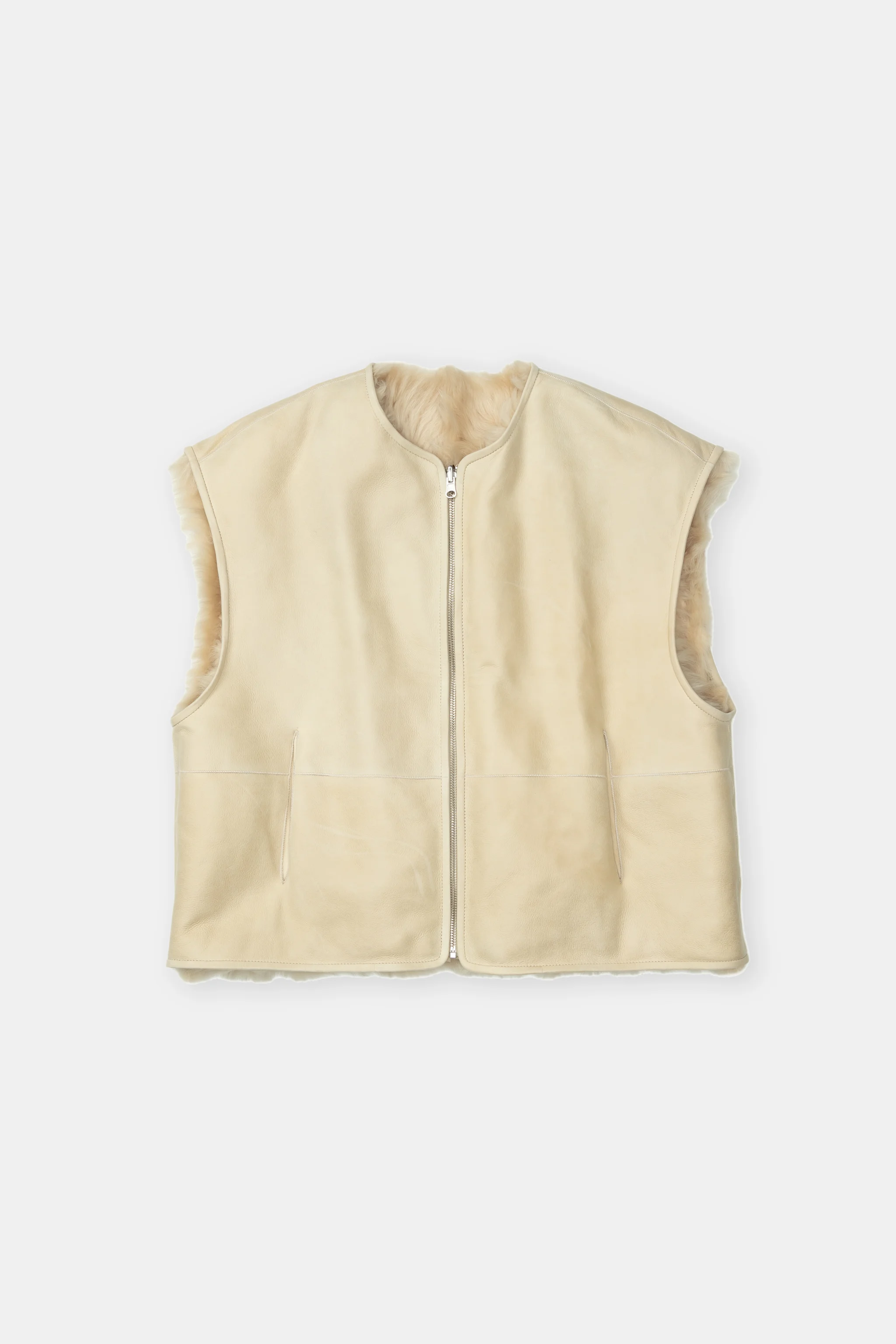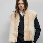 Our waistcoat is made from Tuscan lambskin tanned in Spain. The long-haired side and the soft side can be worn inside or outside, as the waistcoat has a reversible design. Straight fit, with slit pockets and zip fastening.