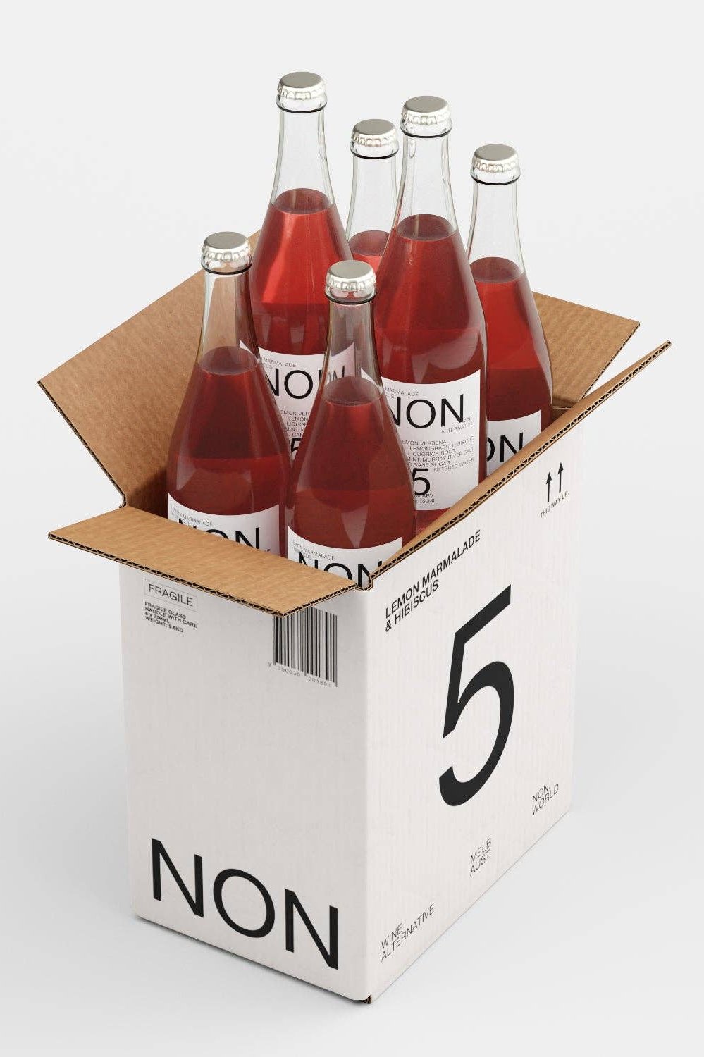 Introducing NON5 a luxurious, sparkling wine alternative crafted annually using seasonal ingredients. Savor the bright notes of Citra Hops and Lemon Verbena in this non-alcoholic beverage. Perfect for special occasions or to elevate any moment, without the alcohol. Cheers to indulgence without compromise.