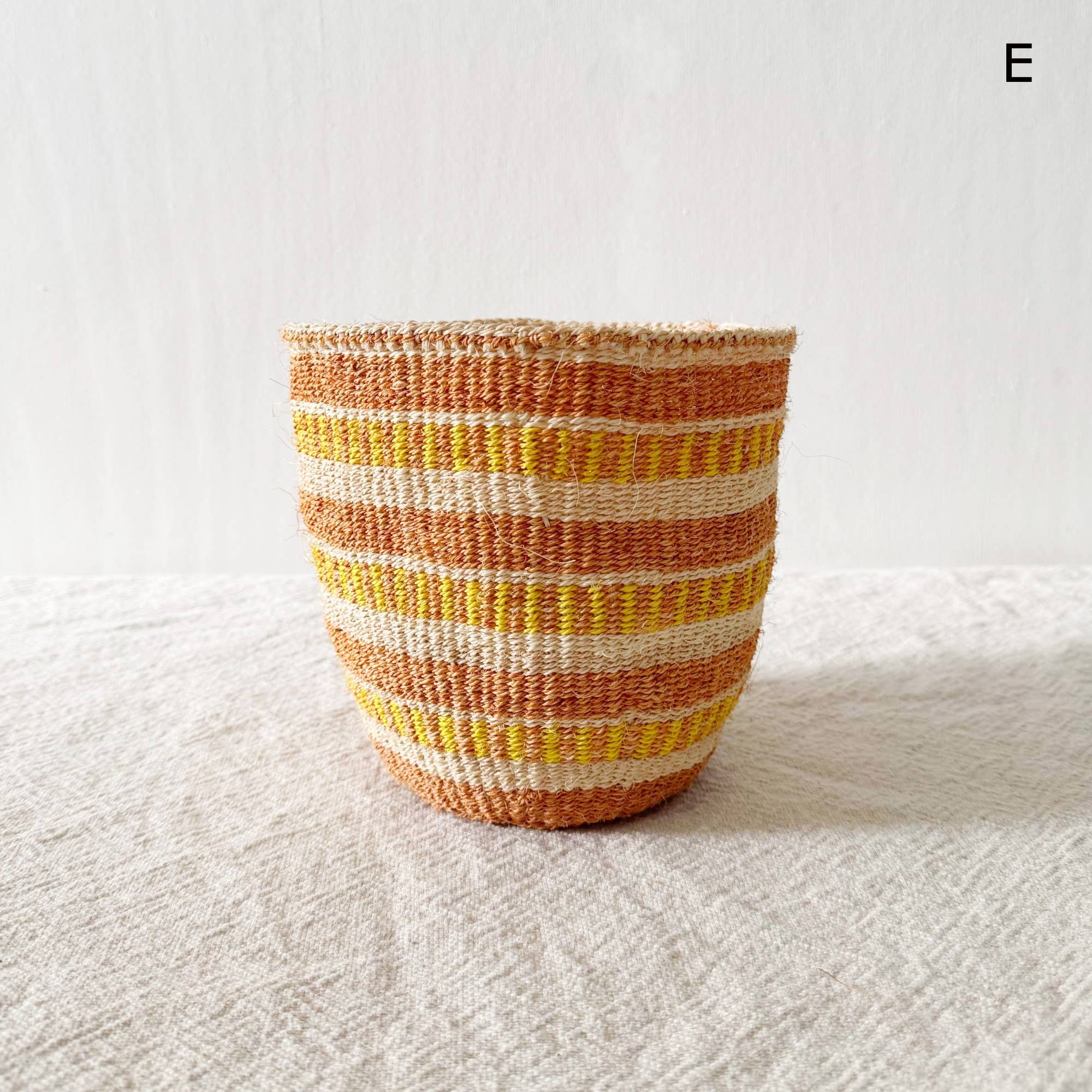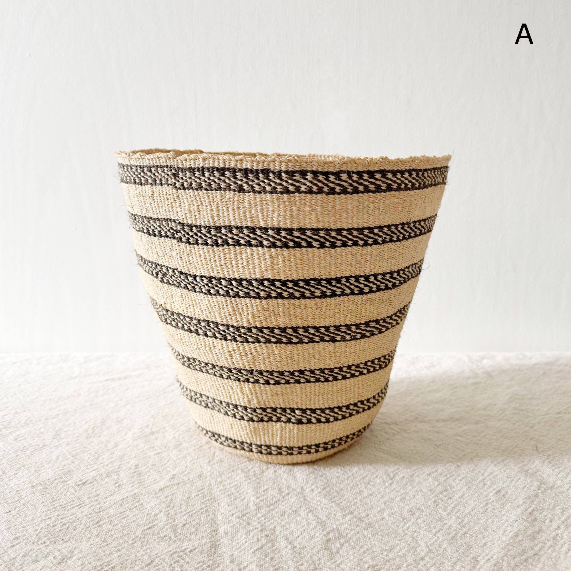 These sisal, woven baskets are handmade by a weaving cooperative in southeastern Kenya. The women hand-dye the sisal fibers and weave them into these beautiful works of art. This type of weaving is called fine weave because it is woven with very thin sisal twine, making it a more intricate, time-consuming design and a true work of art.