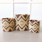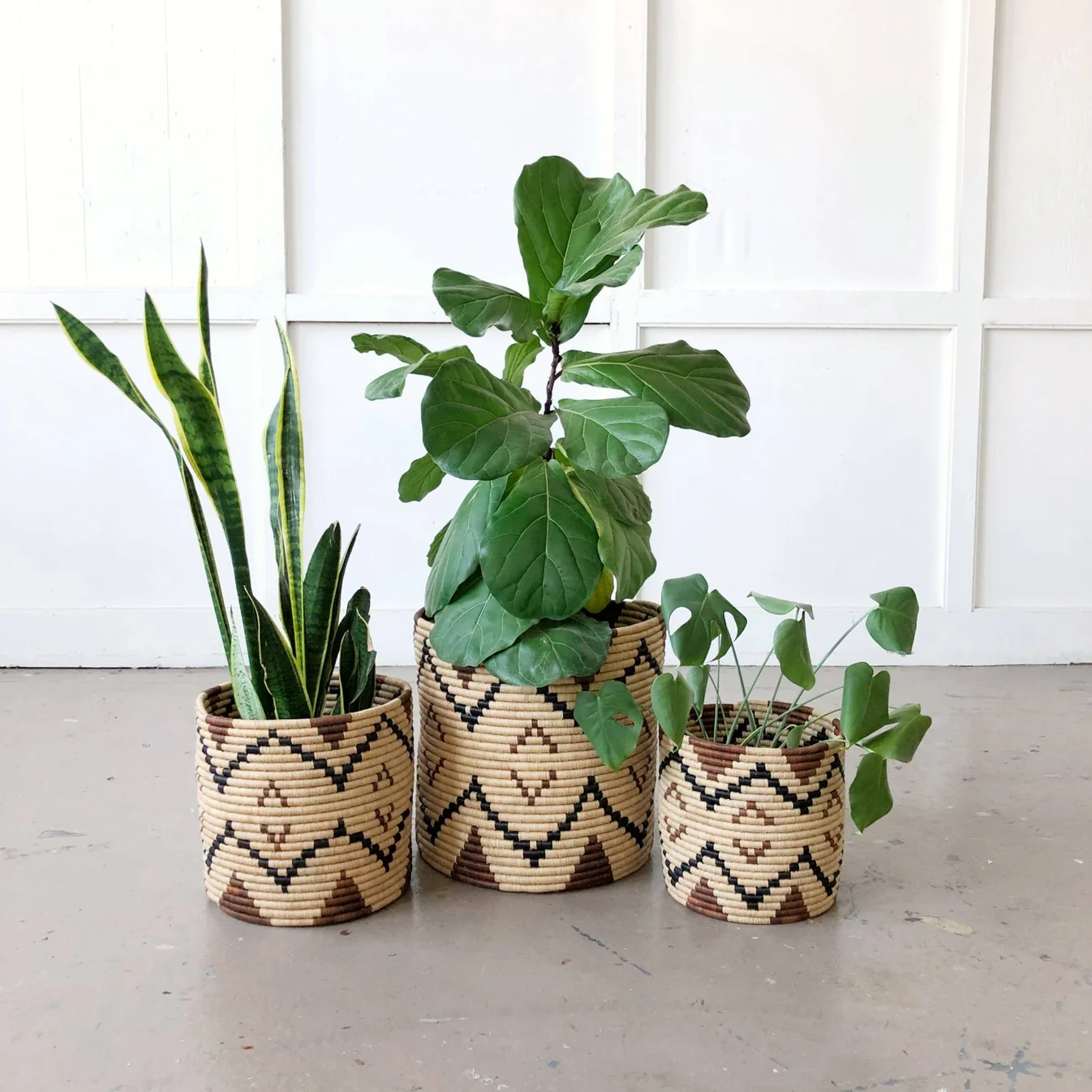 These beautifully crafted planters are handmade in Gitarama, Rwanda using traditional weaving techniques. Made from hand-dyed fibers woven around fragrant sweetgrass, these African baskets can be used as a desk accessory, plant holder, or shelf decoration.