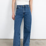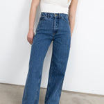 The best selling Isa pant is now available in a beautiful deadstock Japanese denim. The Isa hugs in at the waist and is loose through the leg for a sophisticated yet relaxed fit. Patch pocket on the right leg for extra storage and a nod to the utilitarian painter's pant.