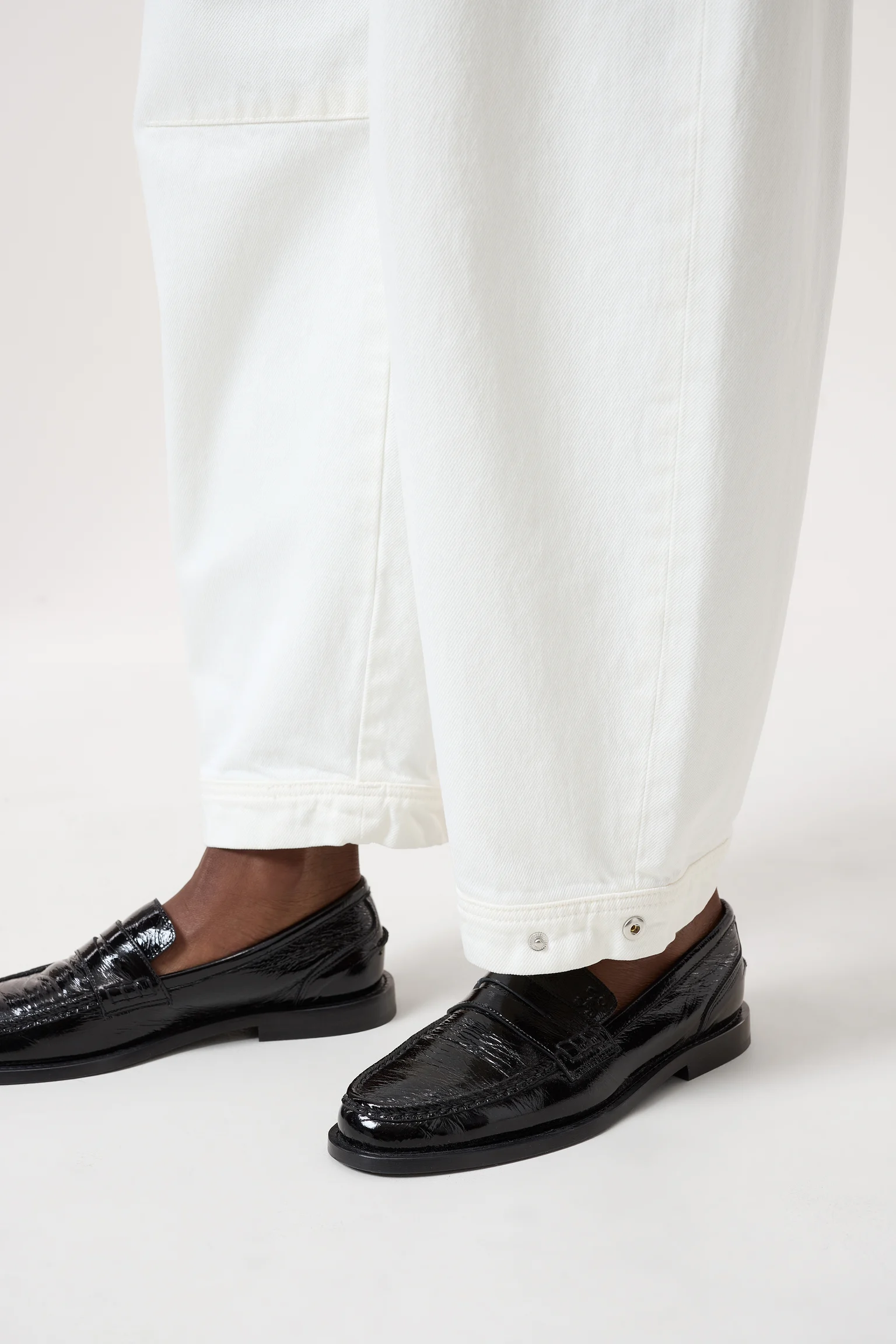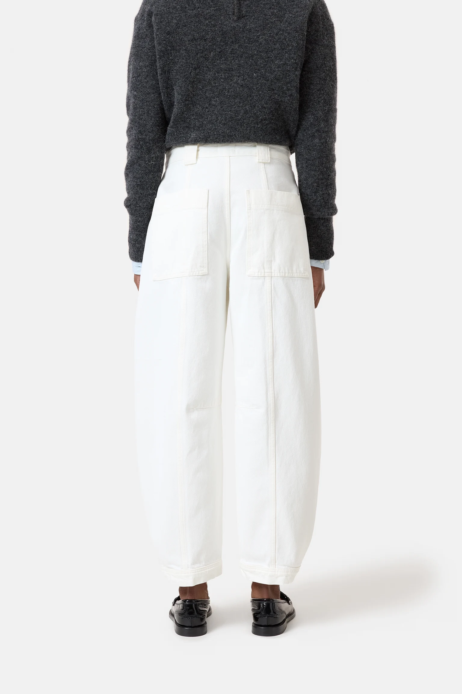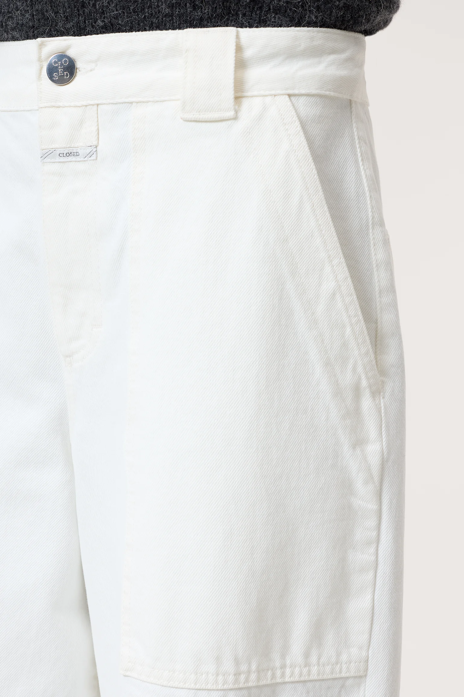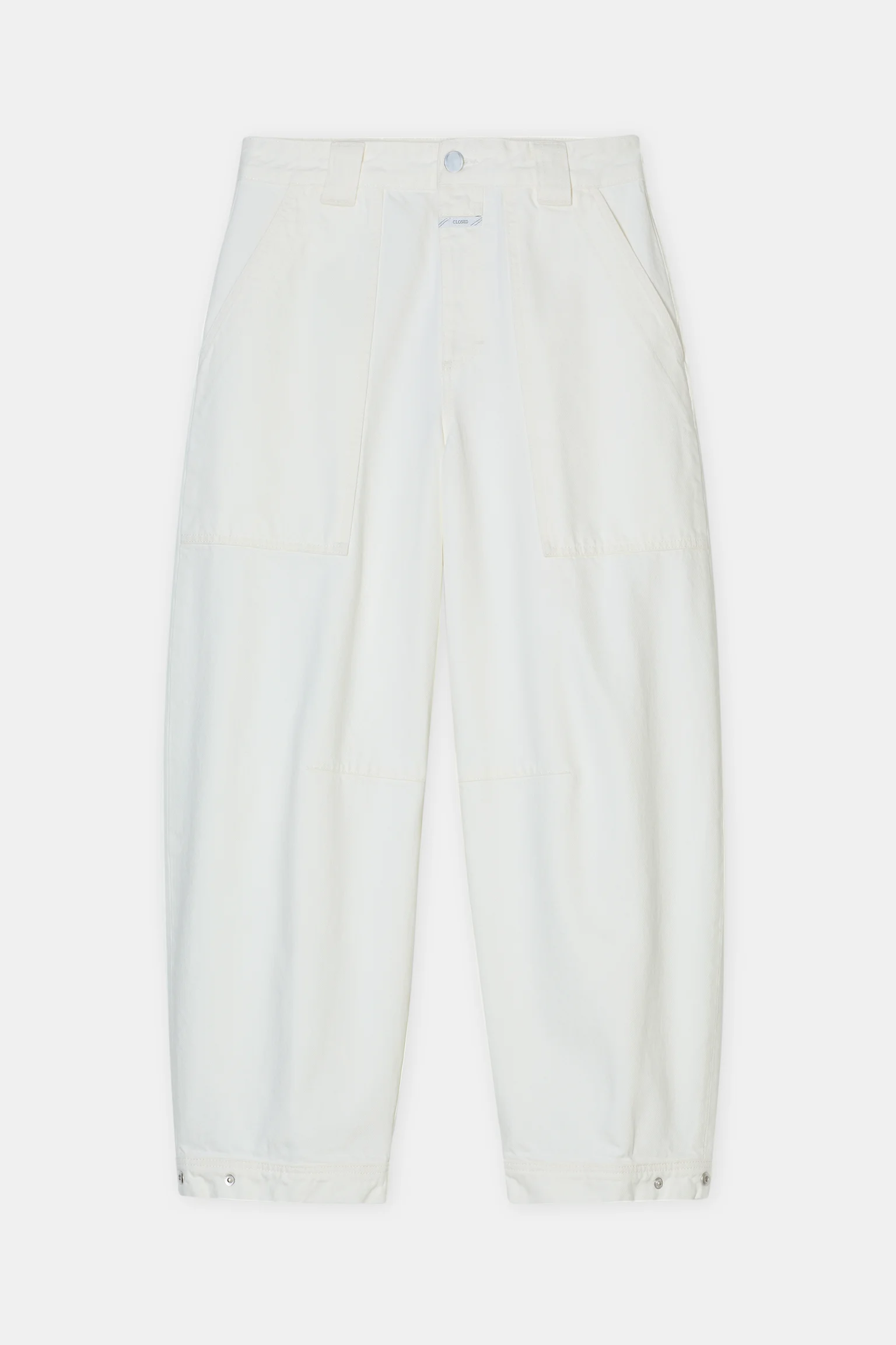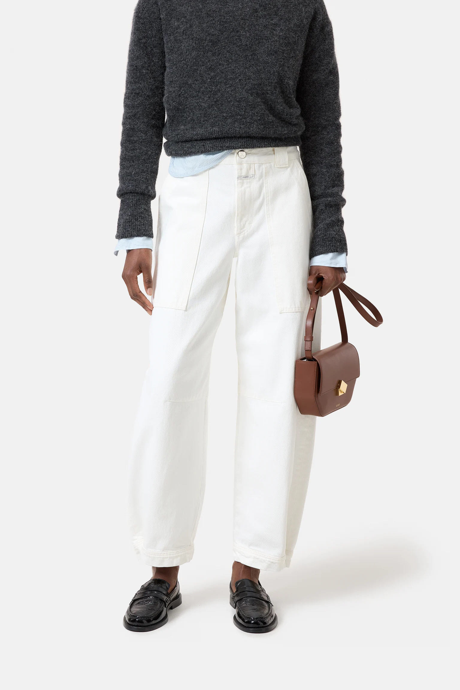 Crafted in Italy from premium denim in milk-white, our Rhannon barrel fit jeans feature a mid-waist, cropped leg silhouette. They come with wide belt loops and large workwear-inspired pockets on the front and back. Special waistbanding and an adjustable hem with Closed metal buttons complete the design.