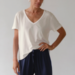 The Jersey Relaxed V-Neck is crafted from 100% cotton and features a softly structured V neckline and an easy, wearable fit.