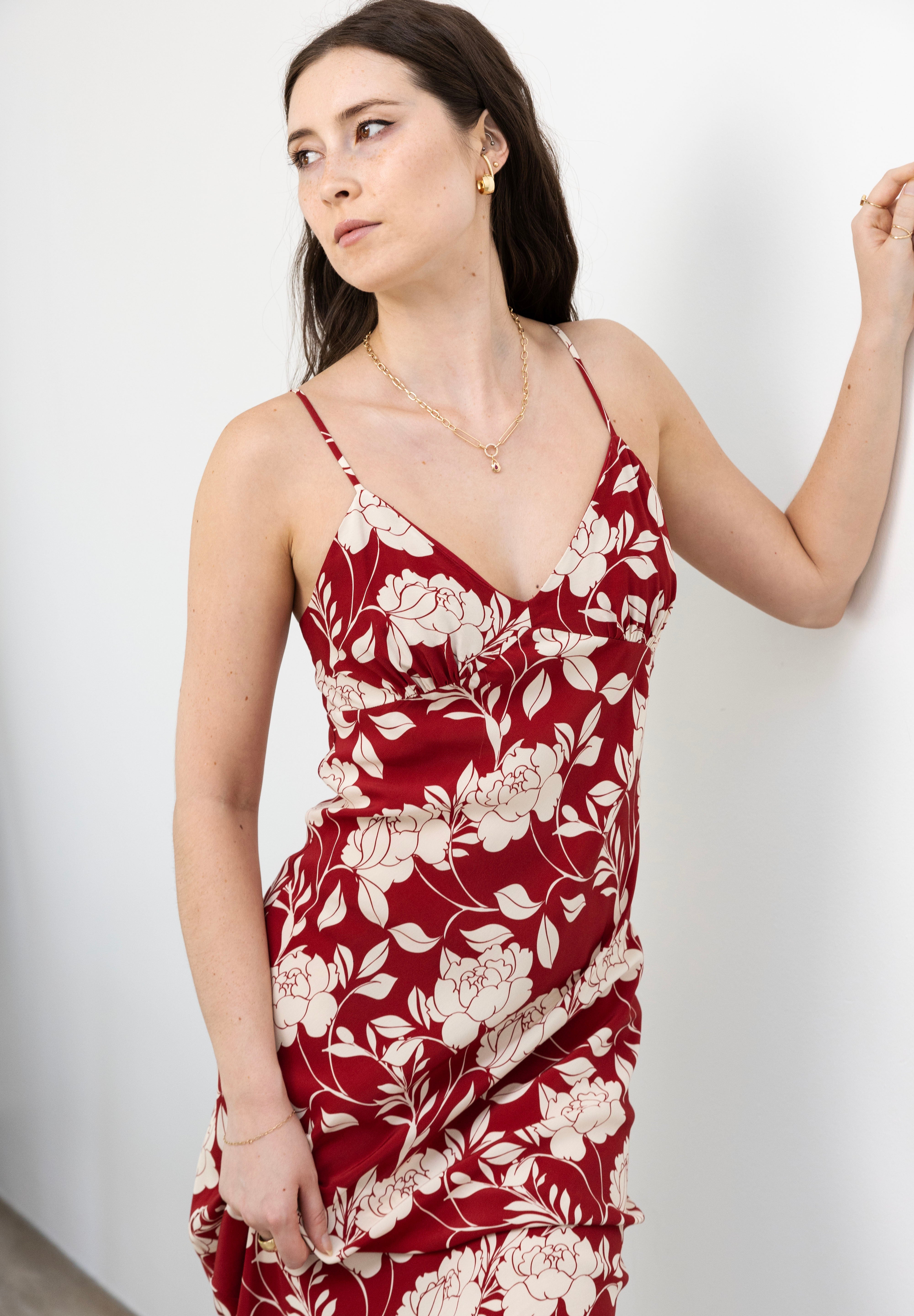 Capture hearts in the Elvie Bias Slipdress featuring a romantic bias cut design, perfect for weddings or date night. Fall in love with its stunning Mariana's Roses print, making it a must-have for any summer evening wardrobe.