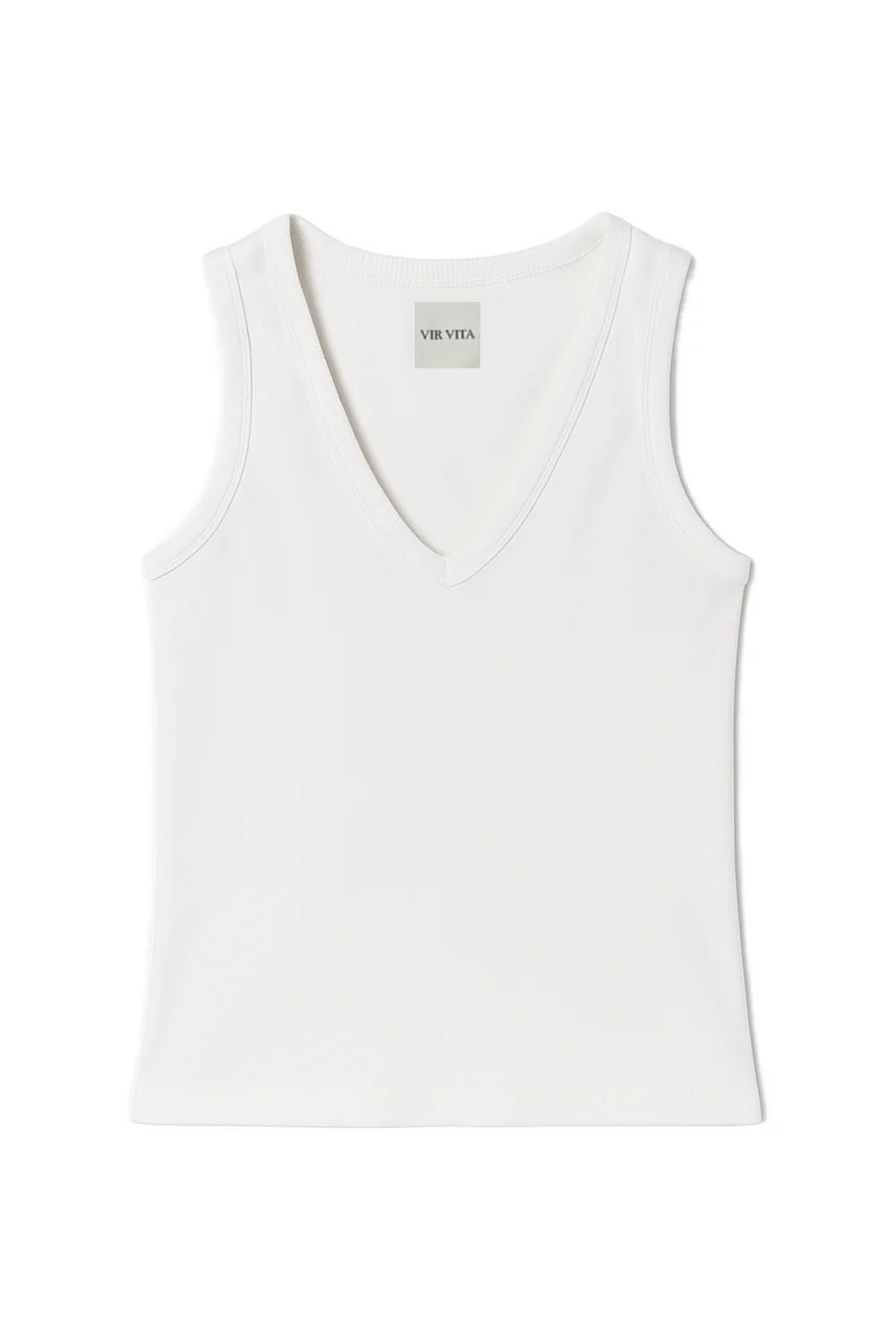 Cut to a clean, elongated line, the Kana Tank is defined by a deep scoop neckline and a close, fluid fit. Crafted from a finely ribbed knit, it serves as a quiet foundation—considered, versatile, and enduring.
