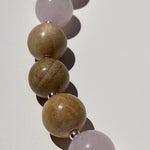 Soft and grounding — blush rose quartz and warm sandalwood beads create a serene, tactile balance.
