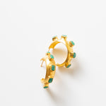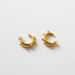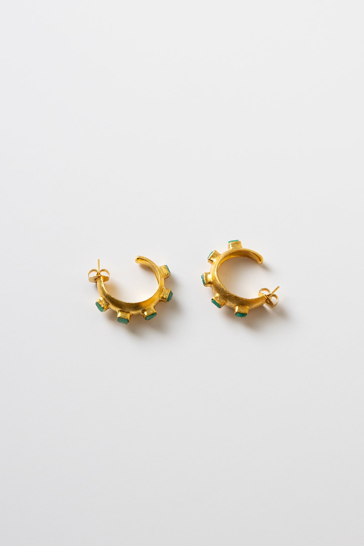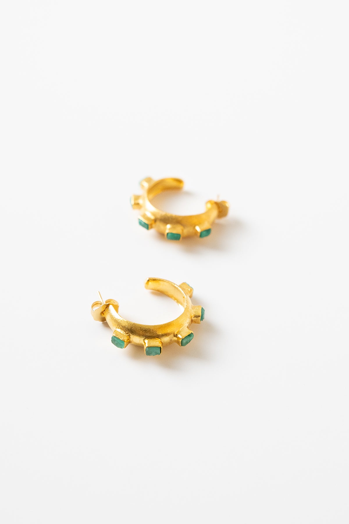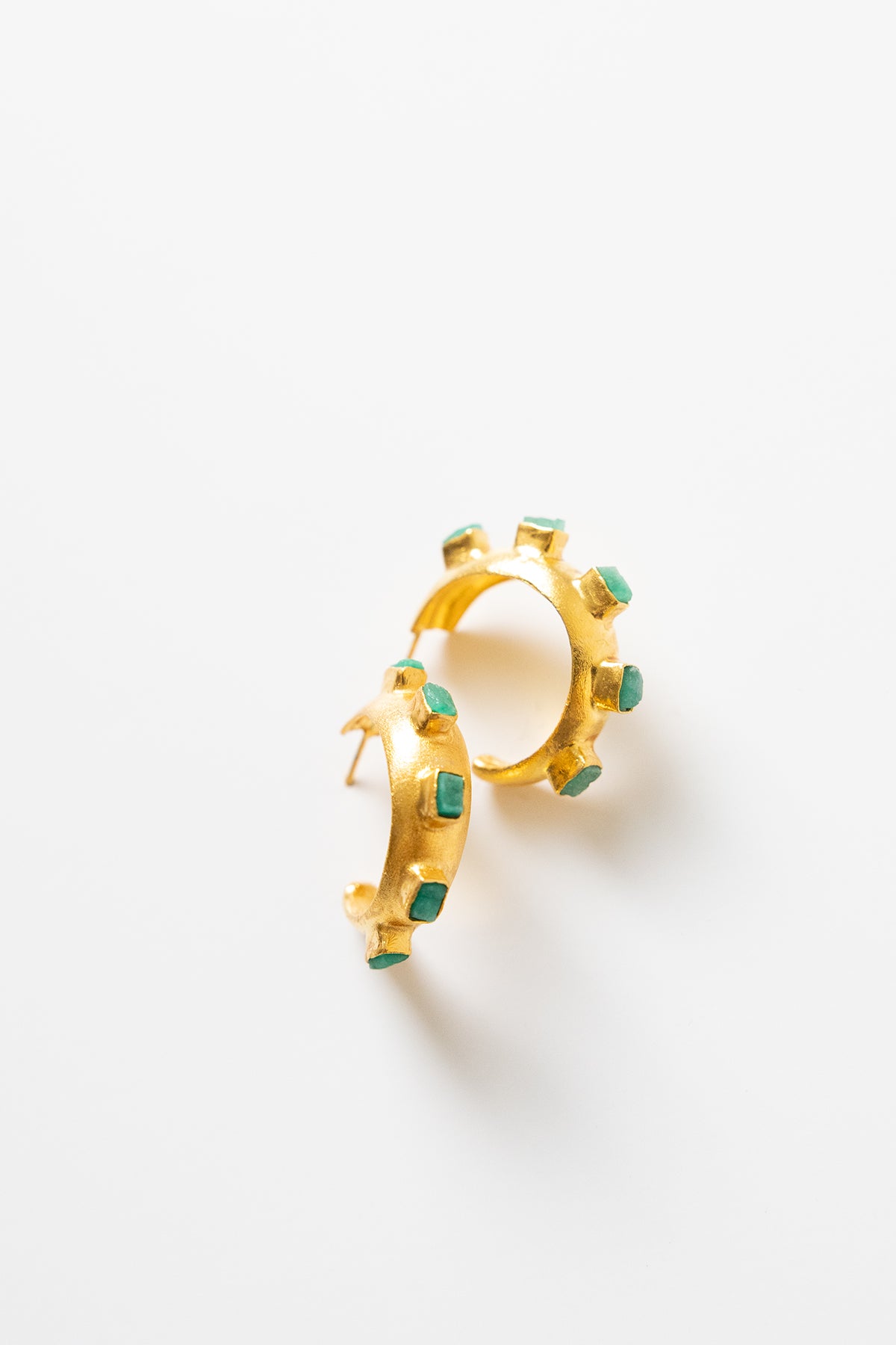 Featuring raw Colombian emeralds set into 24K gold-plated brass, each pair is handmade in Colombia.