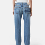 The Jonta jeans feature a relaxed, mid-rise fit. Made from vintage-inspired denim (12 oz.) with subtle distressing, they showcase an authentic 80's salt 'n pepper wash. Five-pocket design with button closure, zip fly, and belt loops. Made with recycled cotton blend.